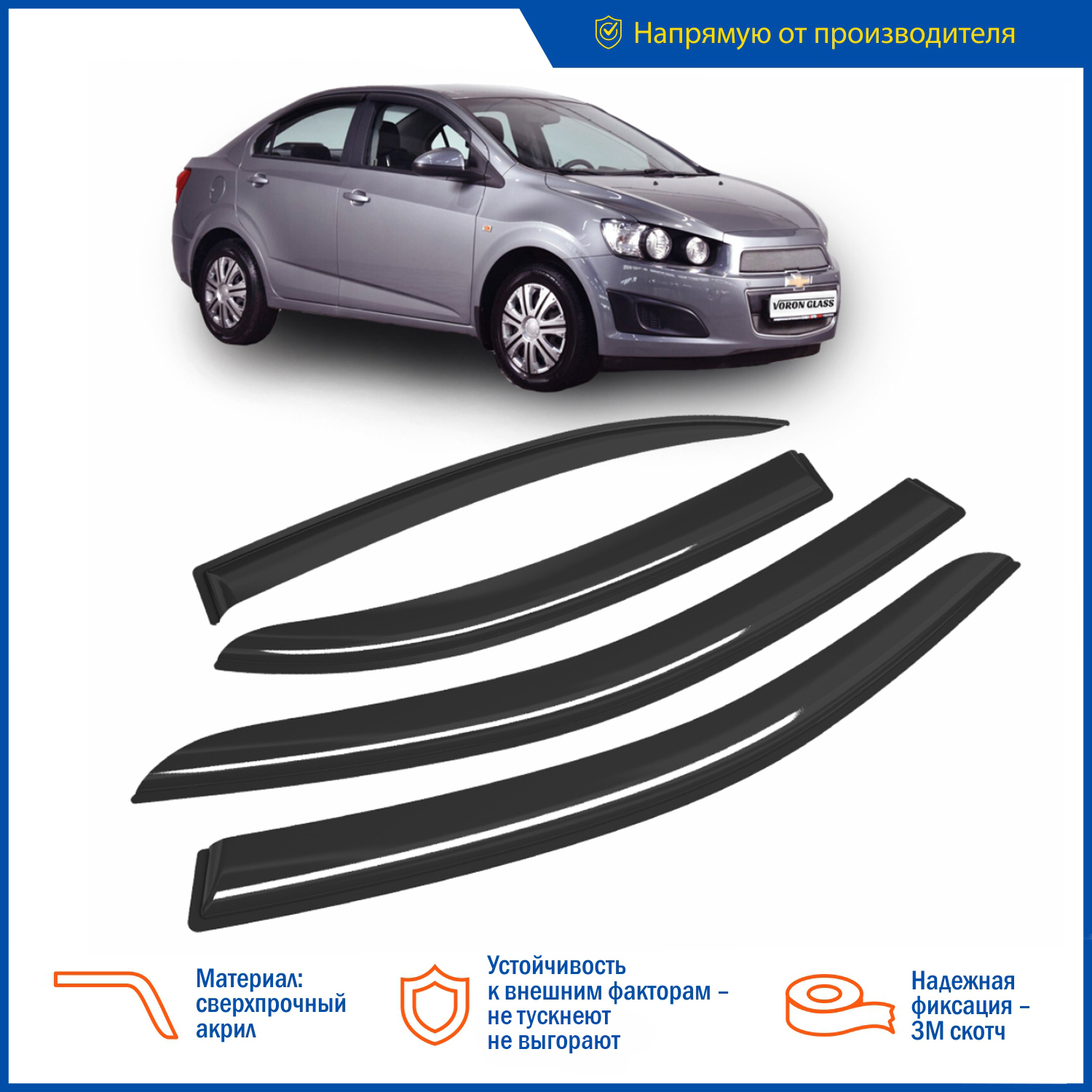 Дефлекторы окон /ветровики/ Voron Glass серия Corsar для Chevrolet Aveo II 2010-2015 /седан /накладные /к-т 4шт/