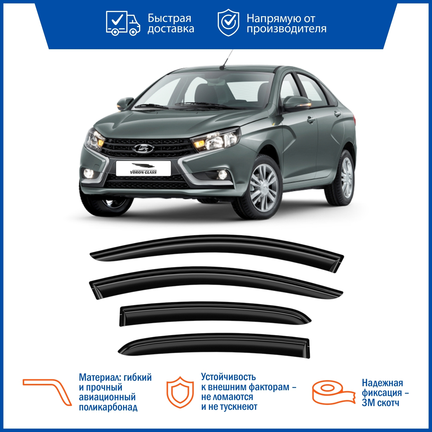 Дефлекторы окон /ветровики/ неломающиеся Voron Glass серия Samurai для Lada / ВАЗ Vesta 2015-н.в. /седан /накладные /к-т 4шт/