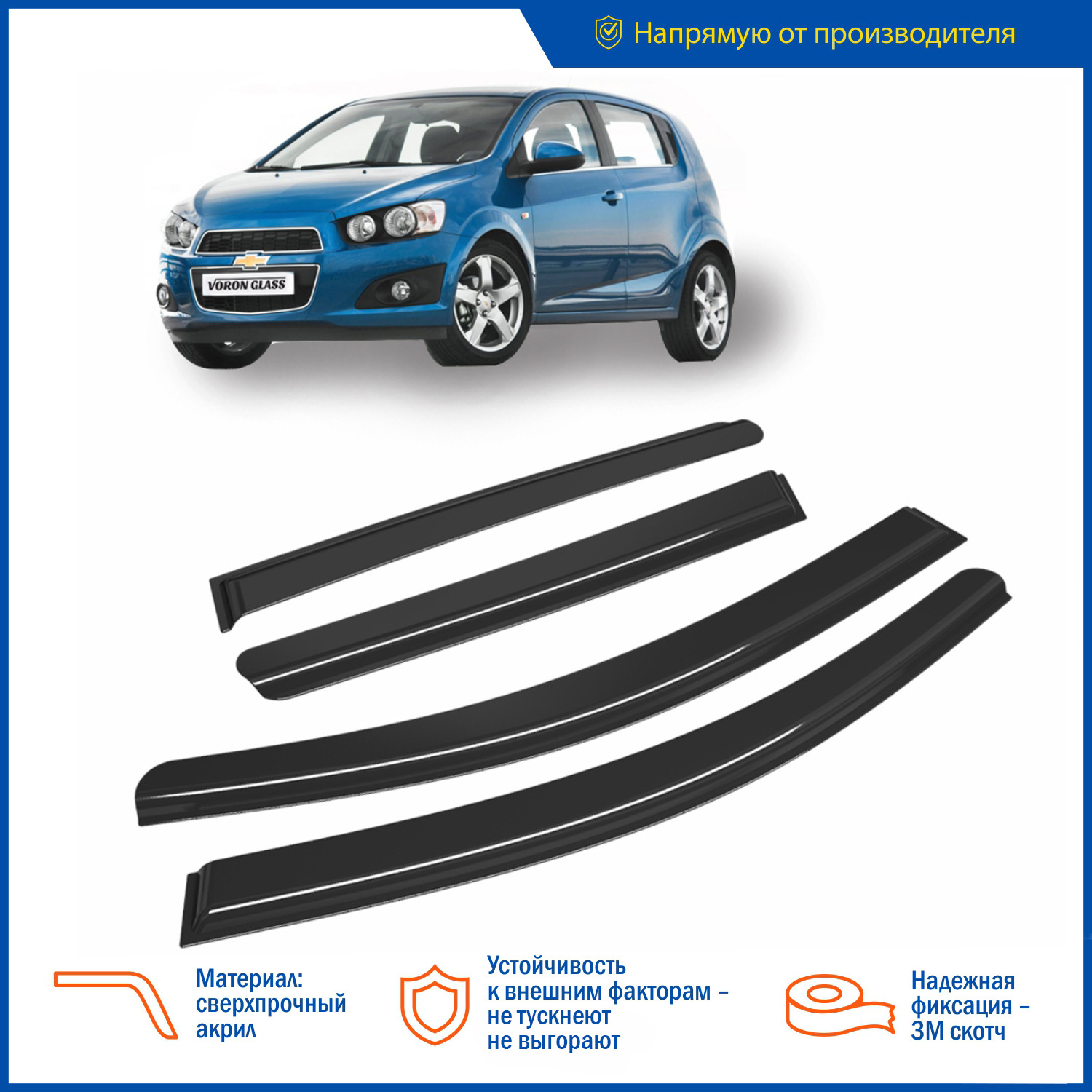 Дефлекторы окон /ветровики/ Voron Glass серия Corsar для Chevrolet Aveo II 2010-2015 /хетчбек /накладные /к-т 4шт/