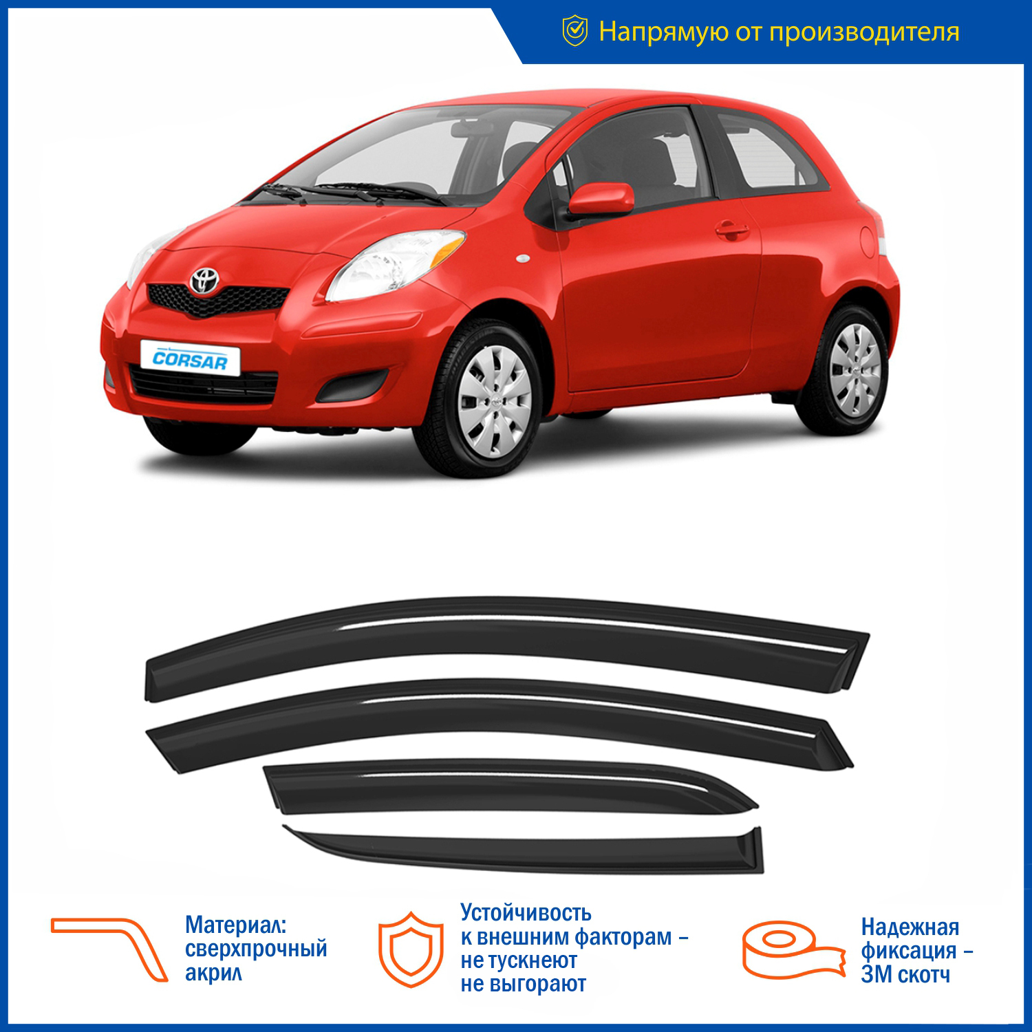 Дефлекторы окон /ветровики/ Voron Glass серия Corsar для Toyota Yaris II XP9 2005-2012 / Vitz II XP90 2005-2010 /хетчбек /накладные /к-т 4шт/