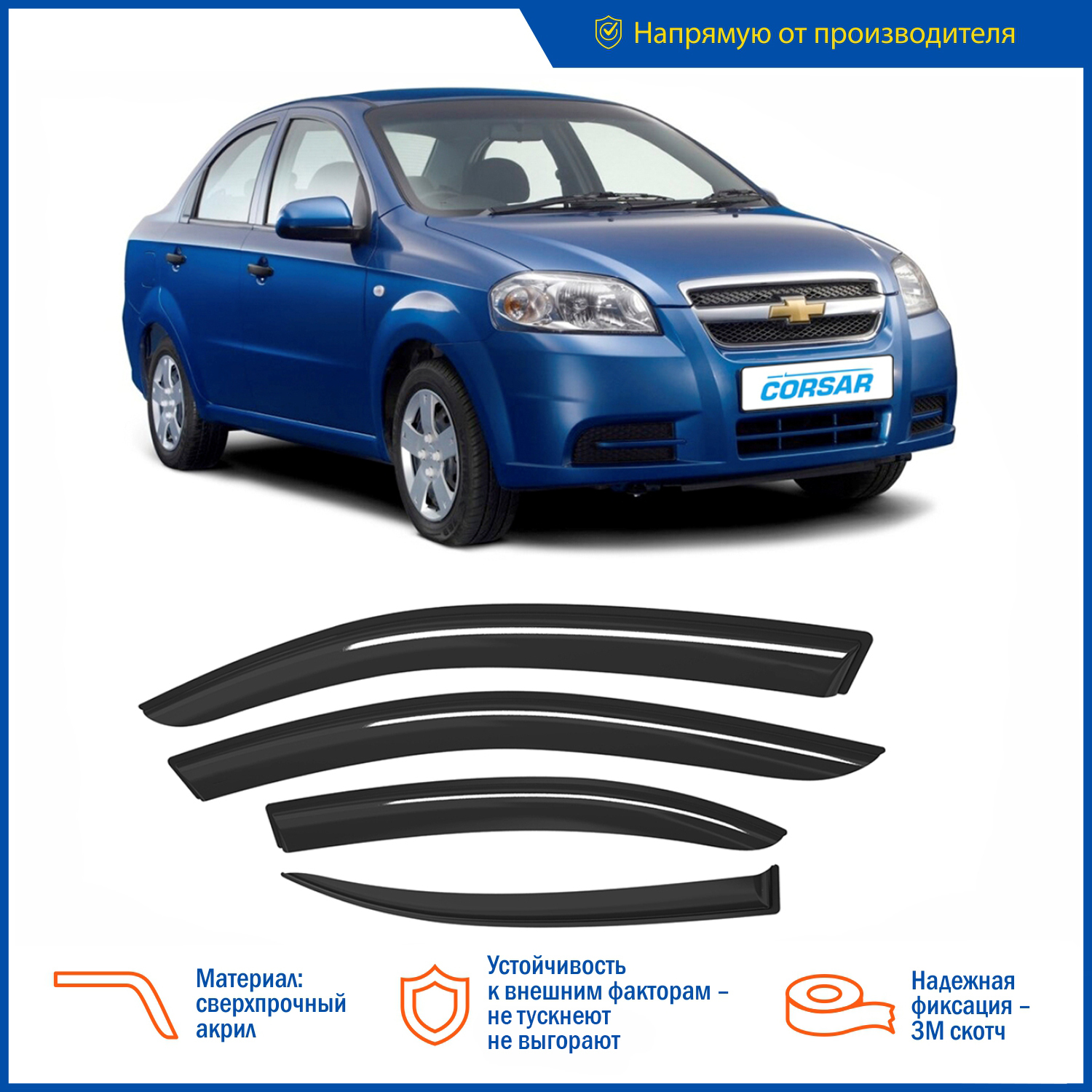 Дефлекторы окон /ветровики/ Voron Glass серия Corsar для Chevrolet Aveo 2006-2010 /седан /накладные /к-т 4шт/