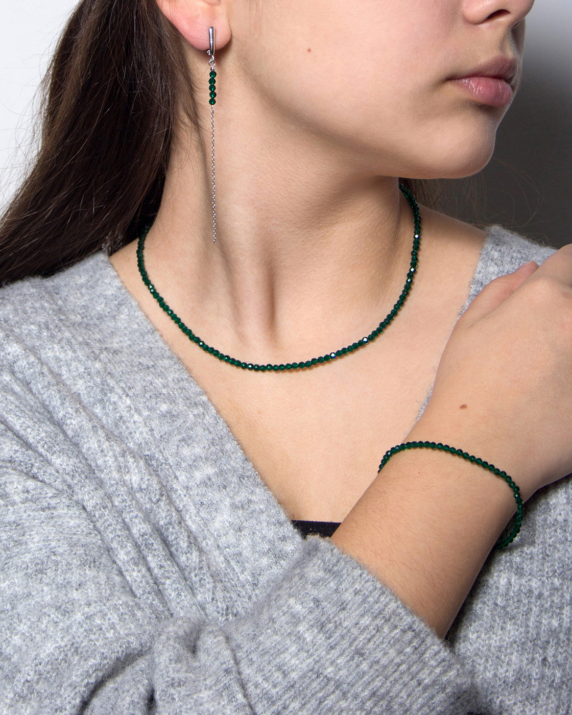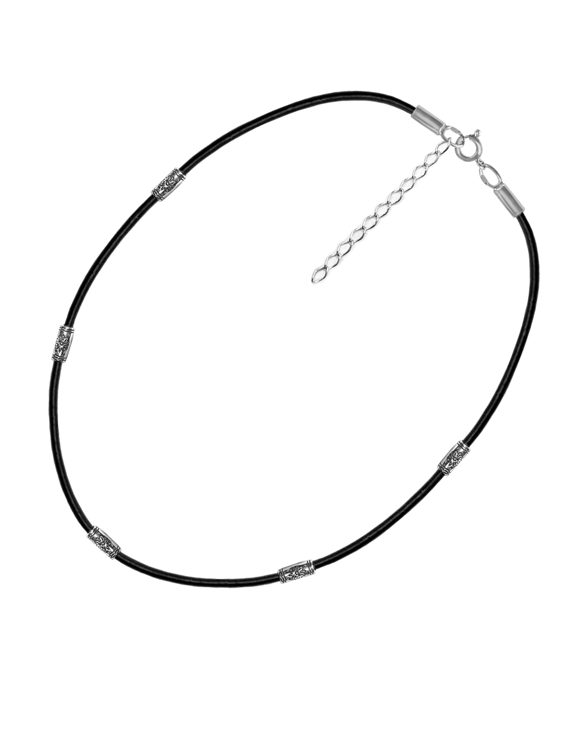 Фабрика Ф Колье шнурок из каучука с накладками из серебра