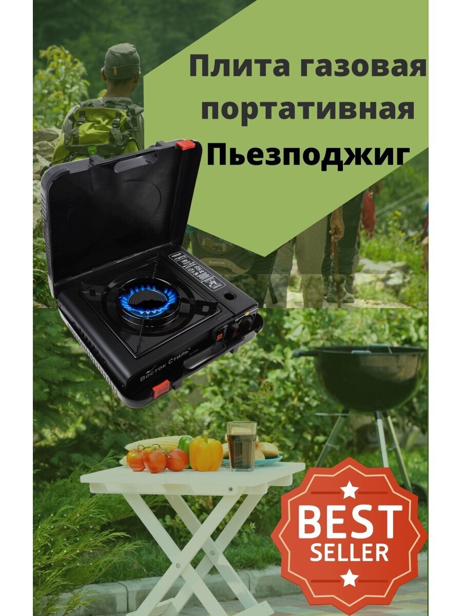 Плита туристическая газовая, керамическая с переходником под баллон