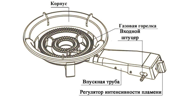 Горелка газовая чугунная для казана, 8 кВт, 28 см