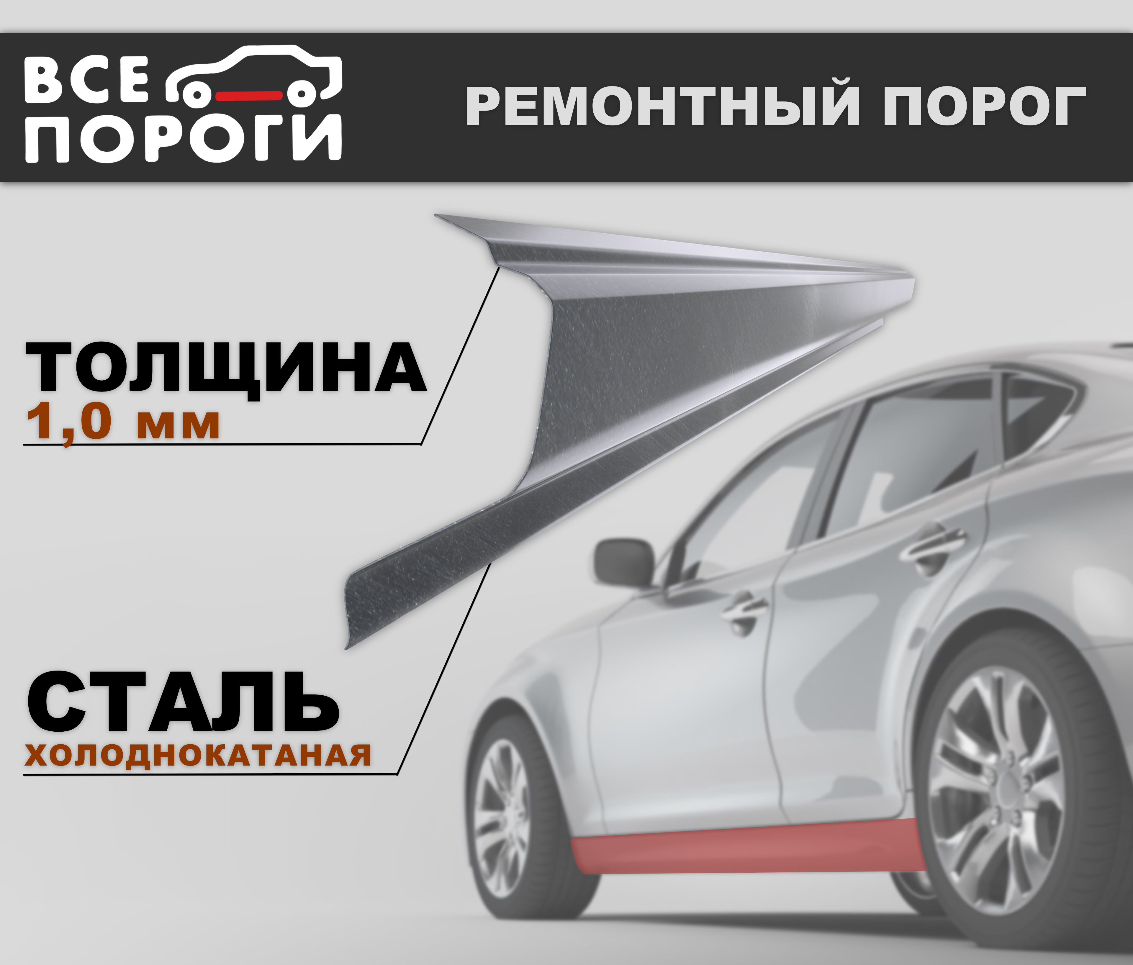 Порог автомобиль левый для Nissan Primera 3 P12 2001-2008, холоднокатанная сталь, толщина 1мм (Ниссан Примера) - Vseporogi арт. VSP01NIS19.58.L