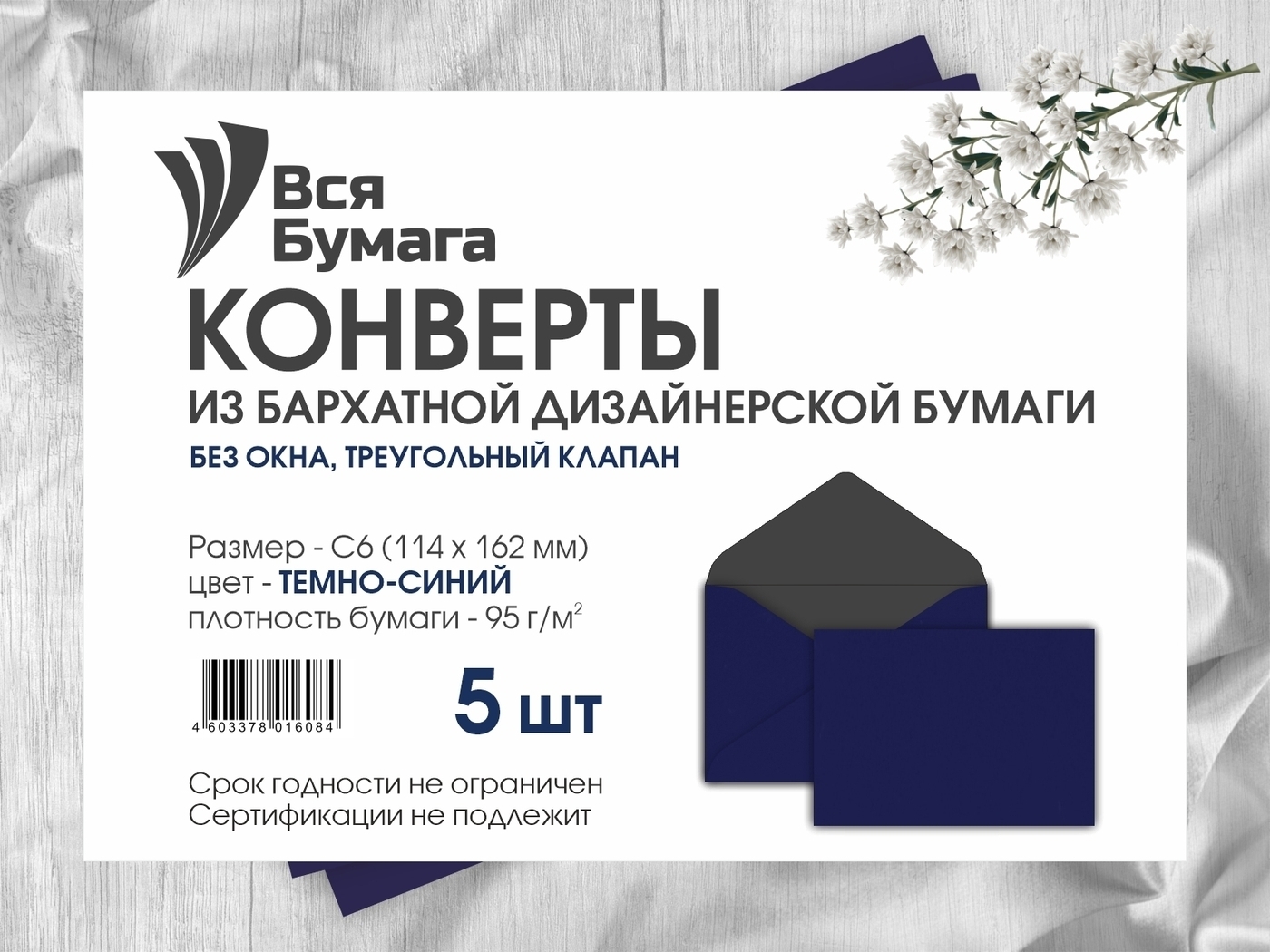 Конверт бархатный С6 (114-162 мм) флокированный, 3 шт., голубой
