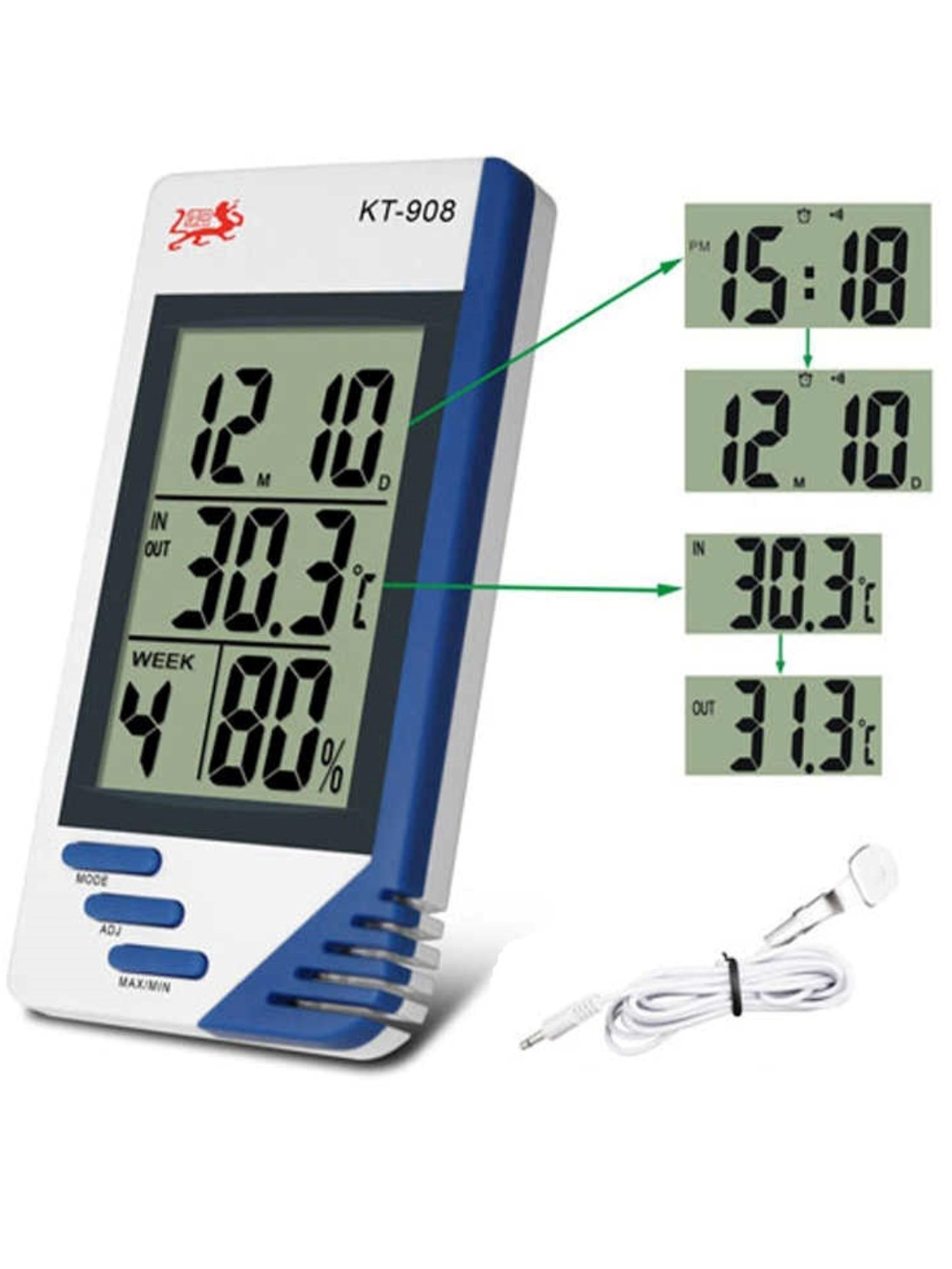 Термометр гигрометр электронный цифровой KT-908 с выносным датчиком