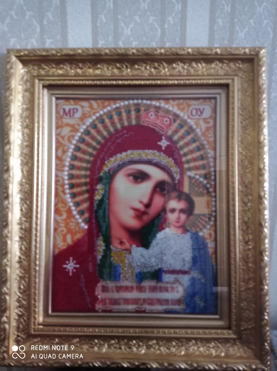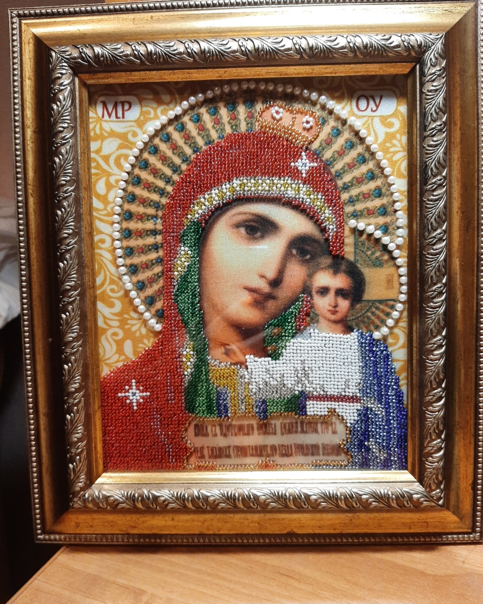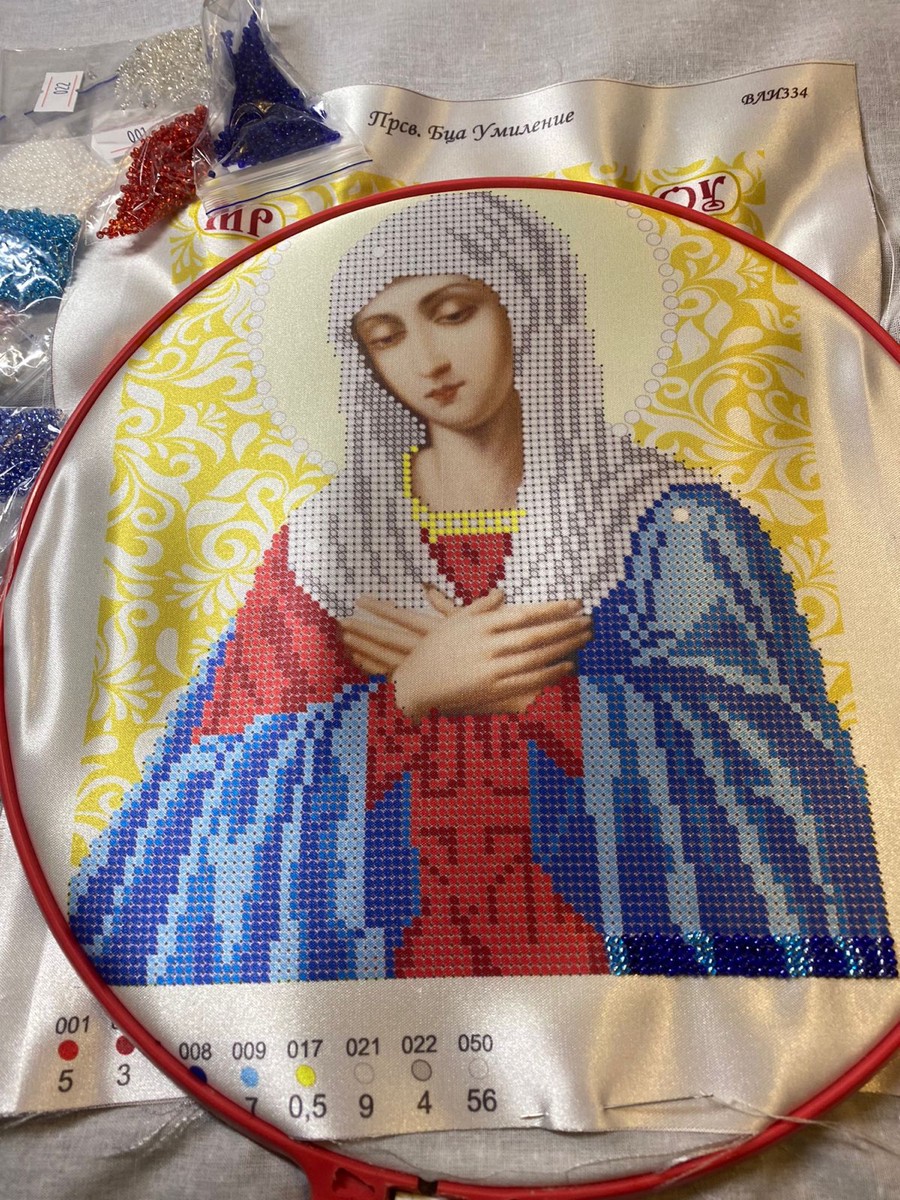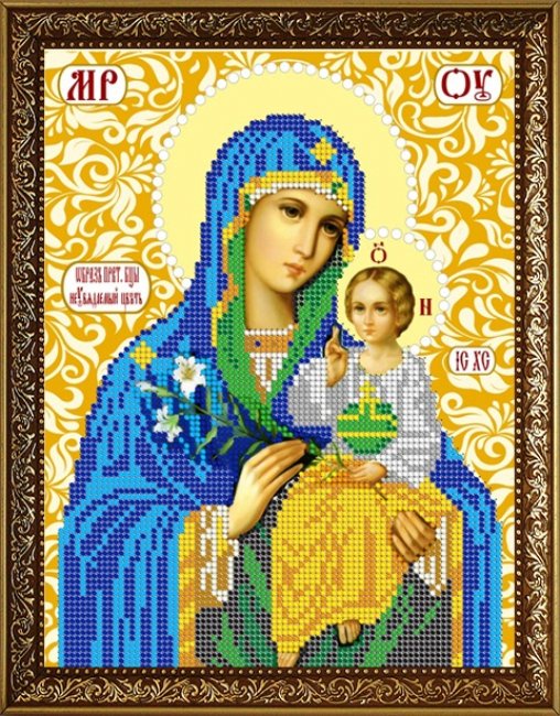 Набор на атласе для вышивания чешским бисером Вышивочка икона Обр Прсв Бцы Неувядаемый цвет 18*23см