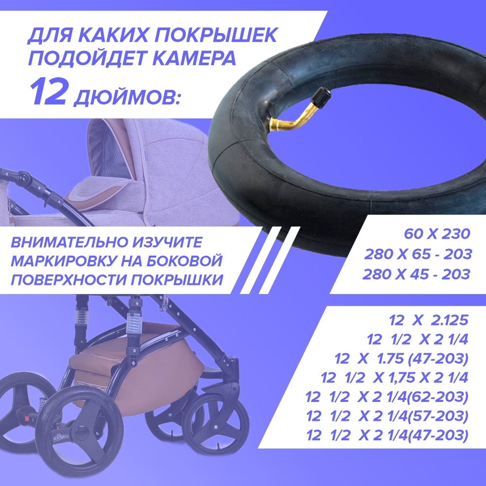Камера для детской коляски 280х65-203 (280/65) с изогнутым ниппелем