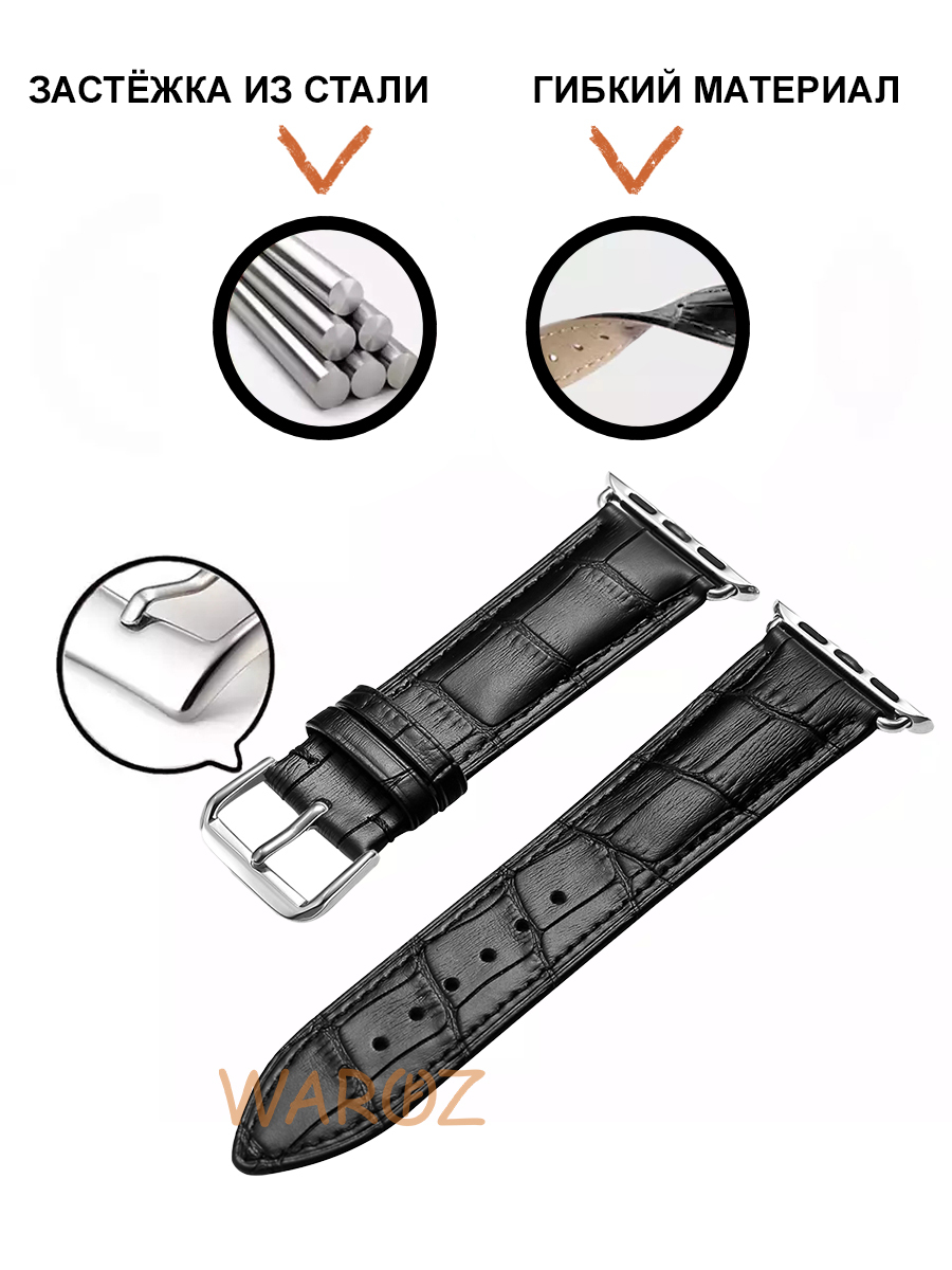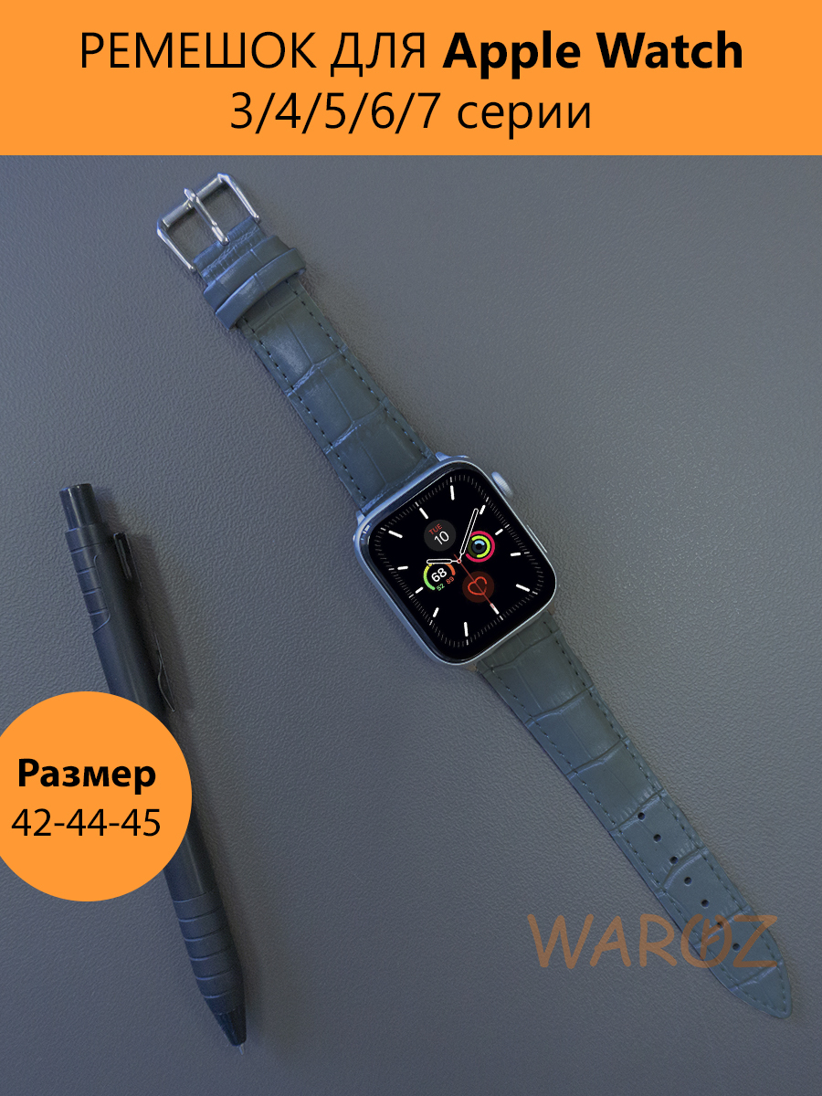 Кожаный ремешок для Apple Watch 42-44 из натуральной кожи. Под кожу крокодила.