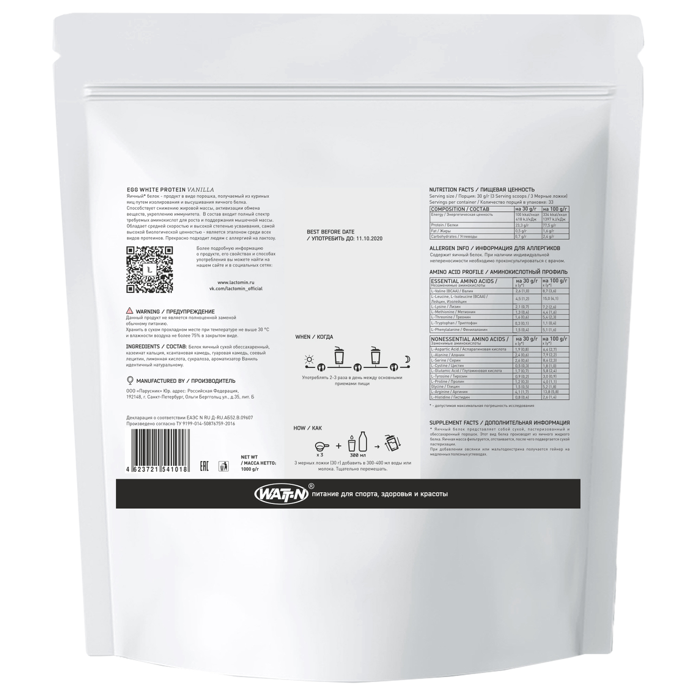 WATTN Egg Protein / Яичный протеин, 1000 гр., ваниль