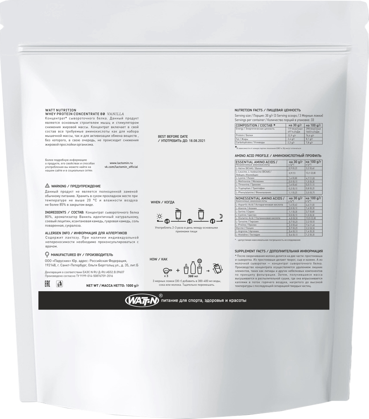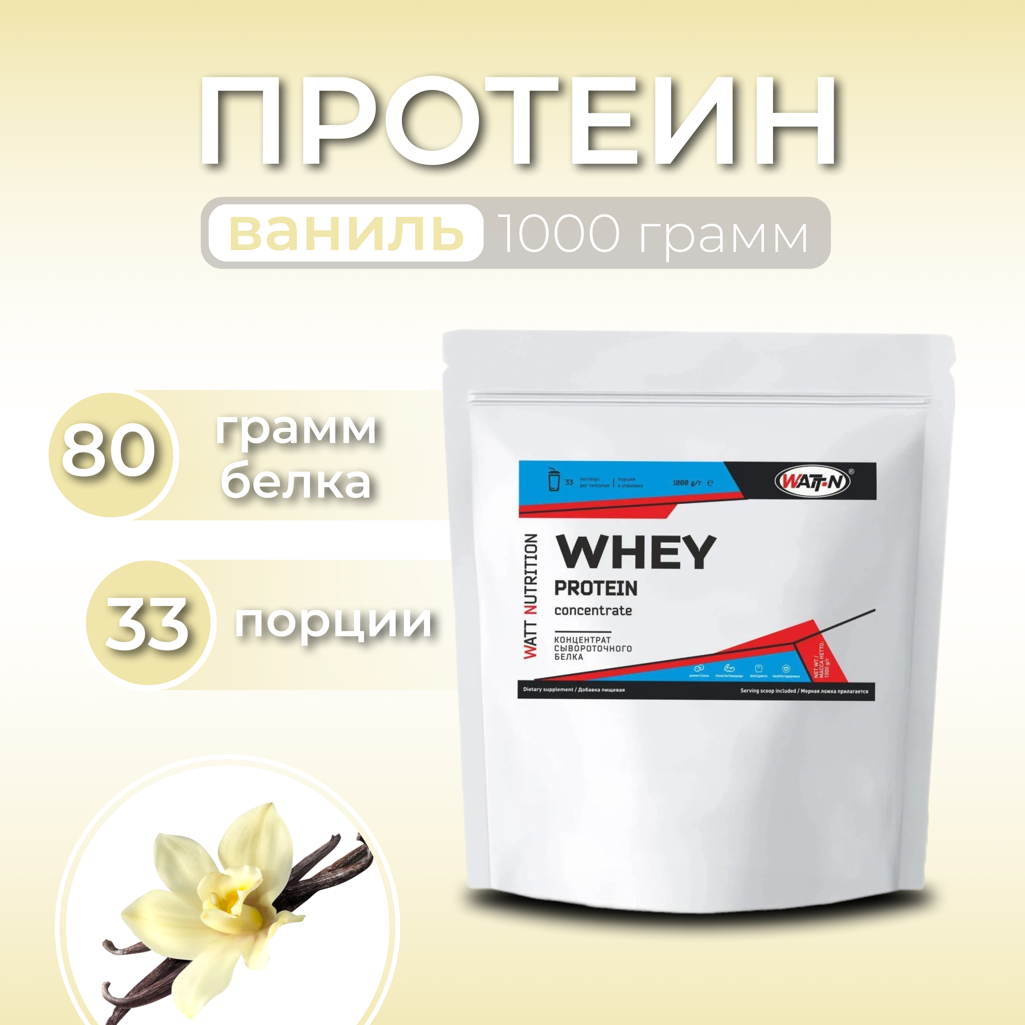 Протеин сывороточный Whey Protein Concentrate 80%, 1000 гр, Ваниль