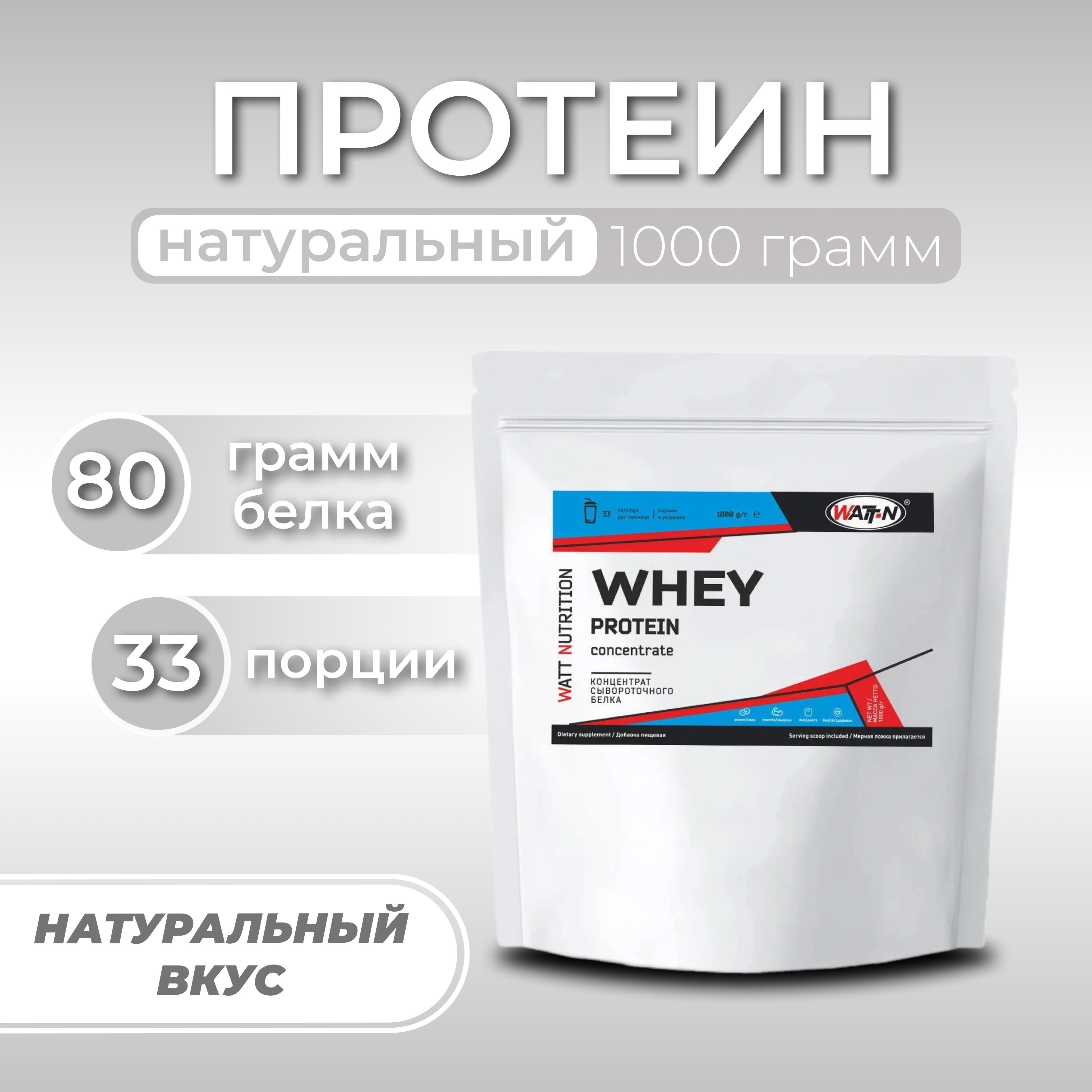 Протеин Whey Protein Concentrate 80%, 1000 гр, Натуральный