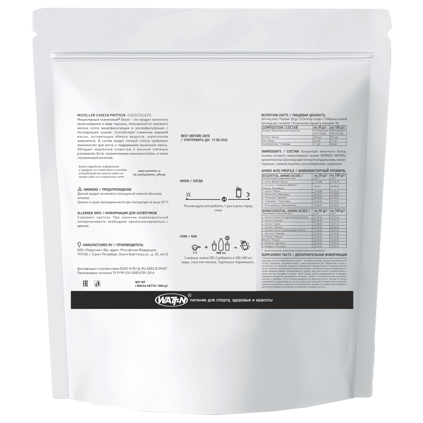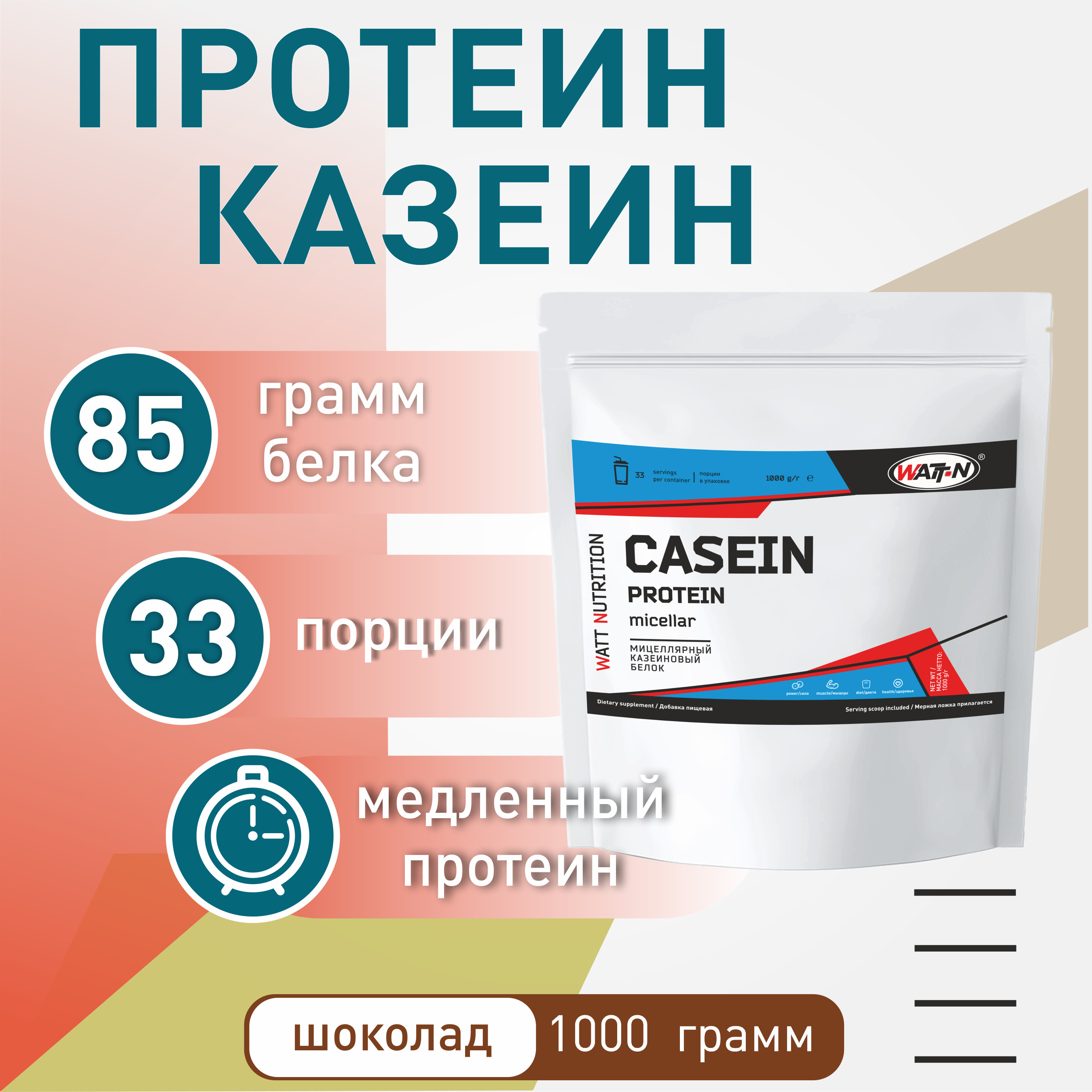 Мицеллярный казеин Casein Protein, шоколад, 1000 гр.
