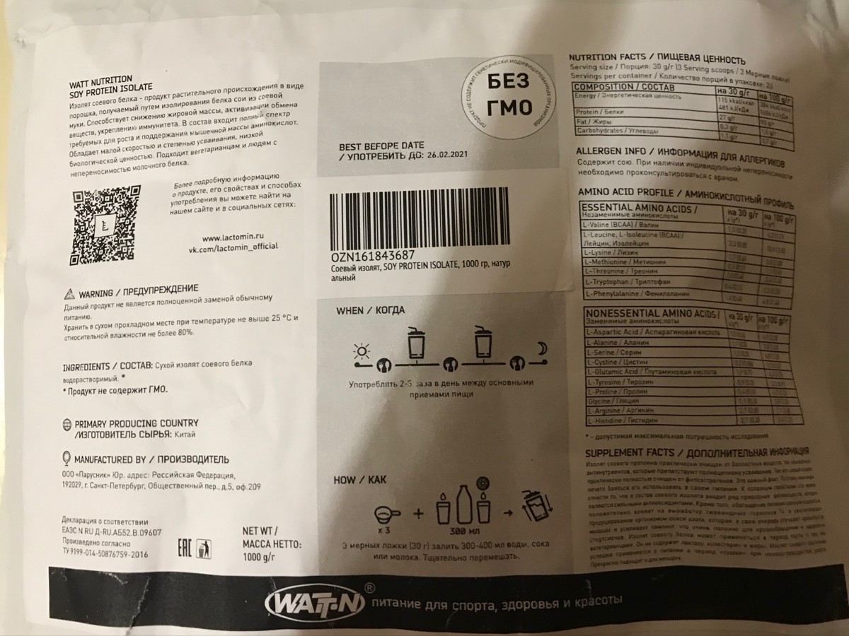 Соевый изолят, SOY PROTEIN ISOLATE, 1000 гр, ваниль