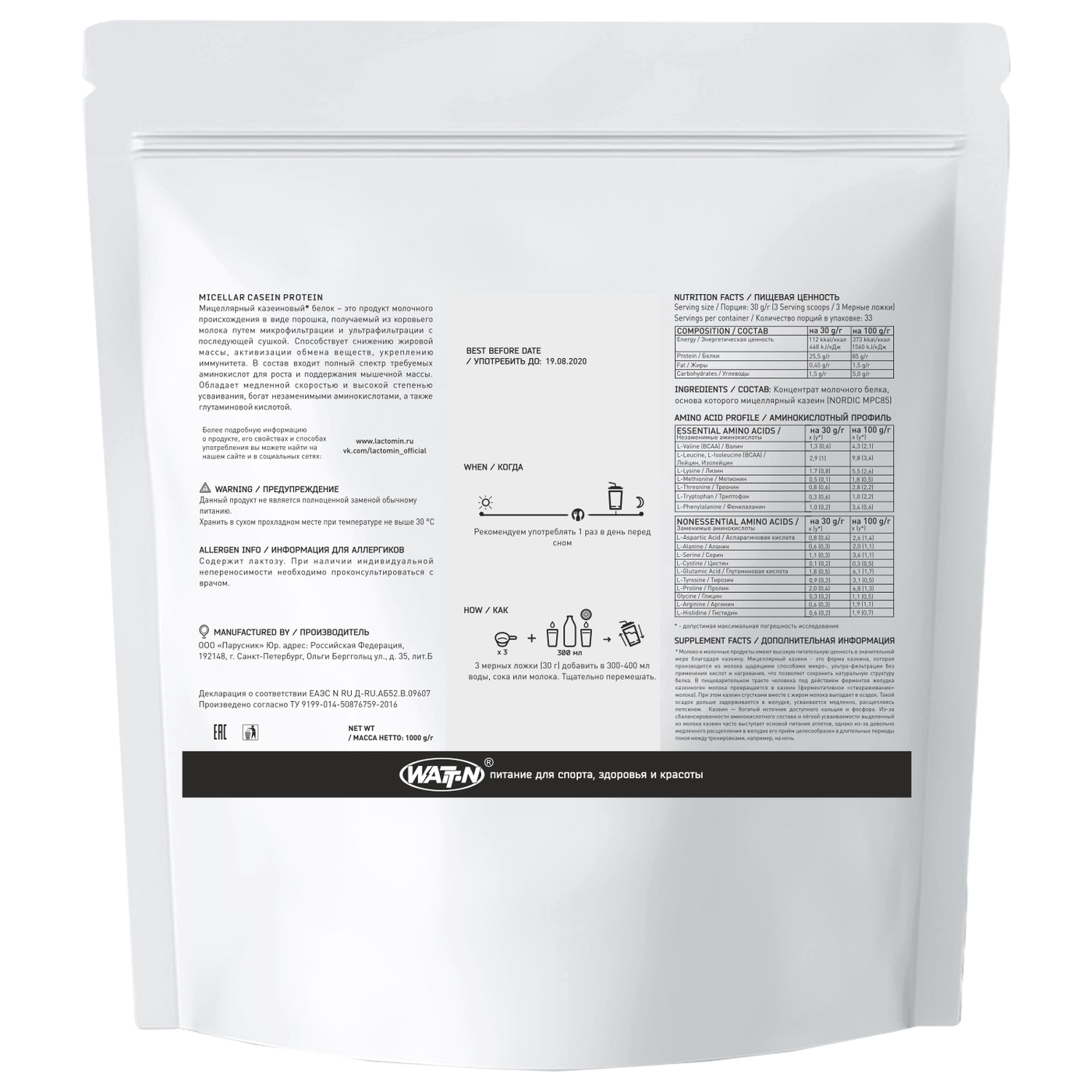 Мицеллярный казеин Casein Protein, ваниль, 1000 гр.