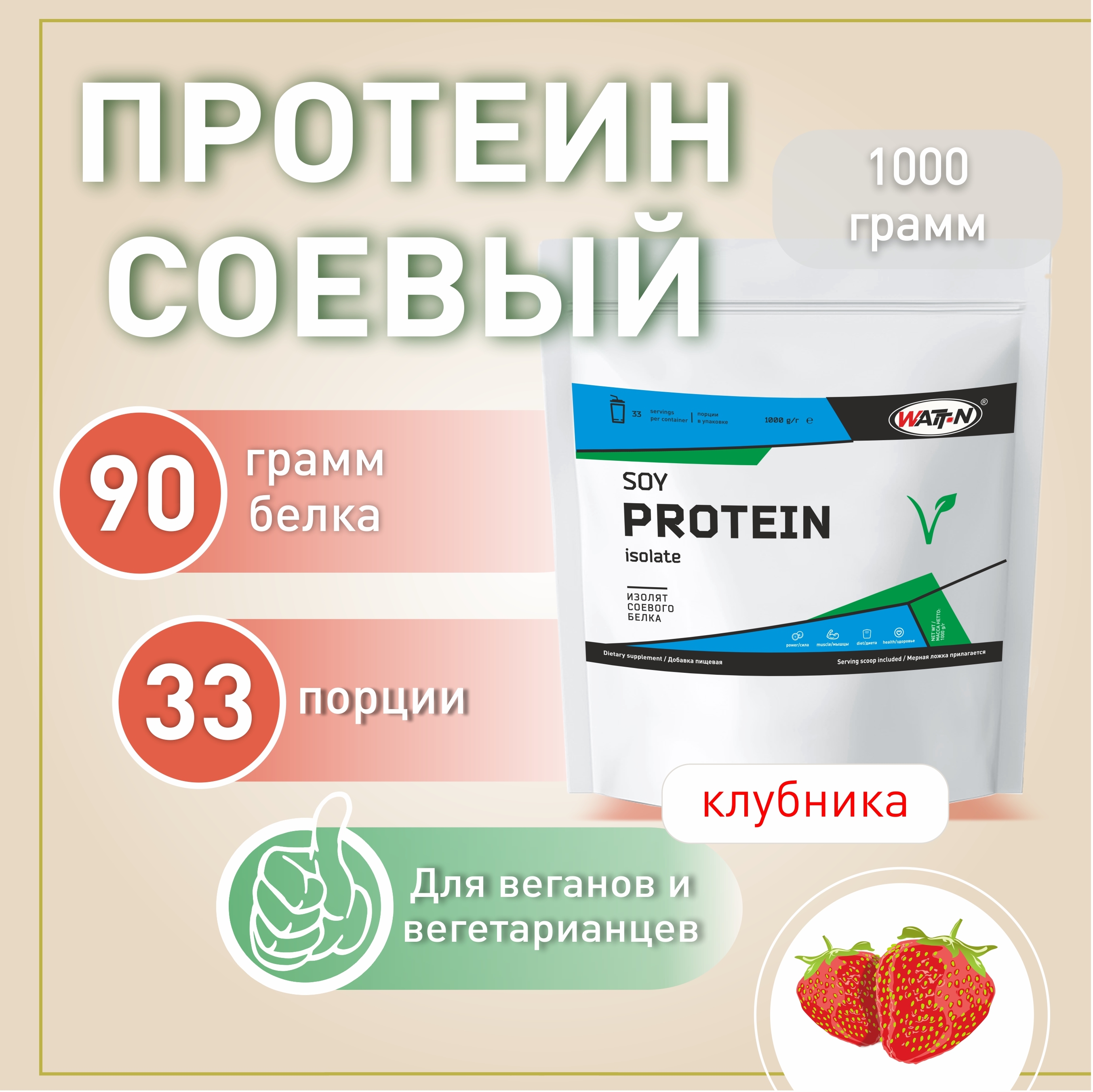 Соевый изолят, SOY PROTEIN ISOLATE, 1000 гр, клубника