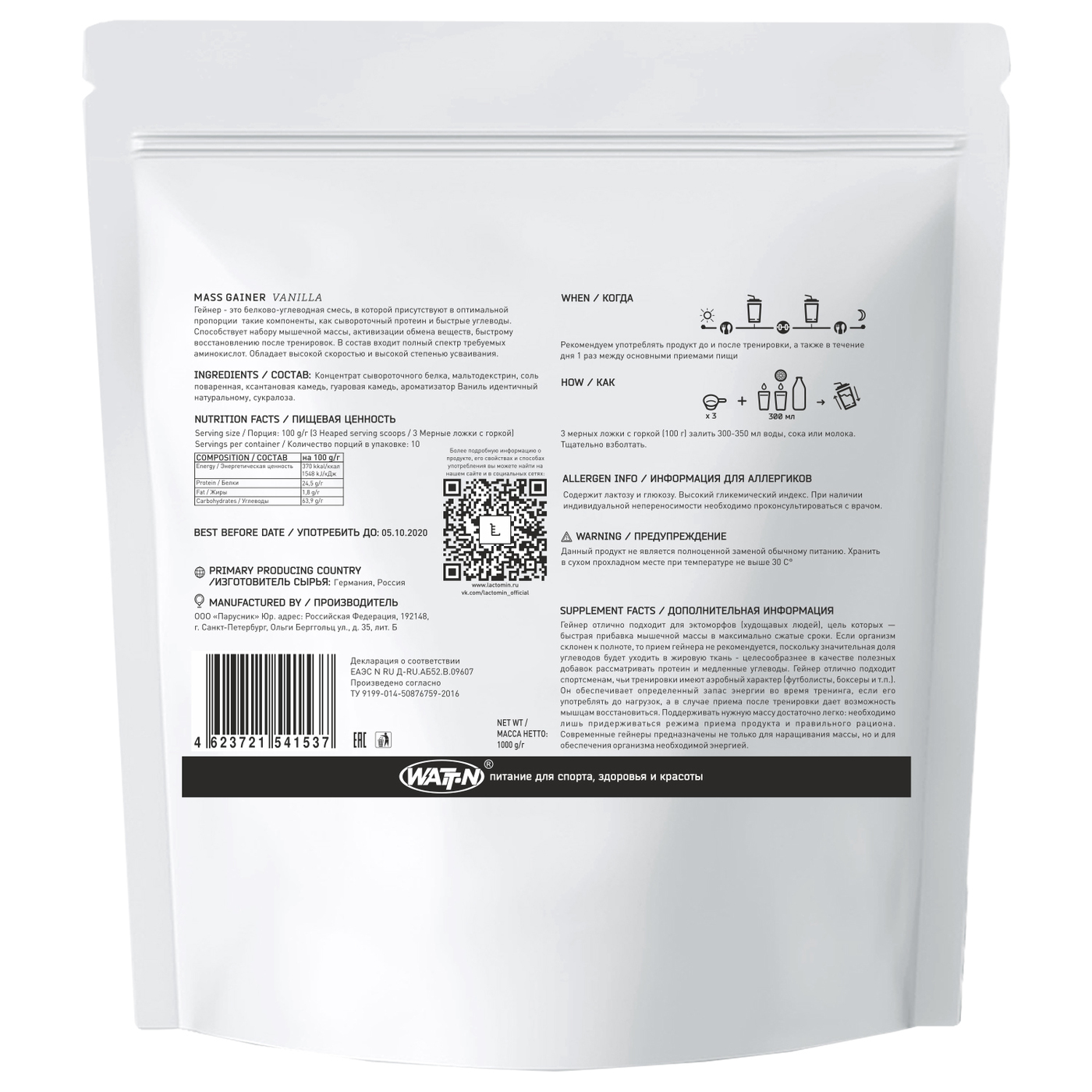 WATT NUTRITION, BCAA 4:1:1, 1000 гр. натуральный