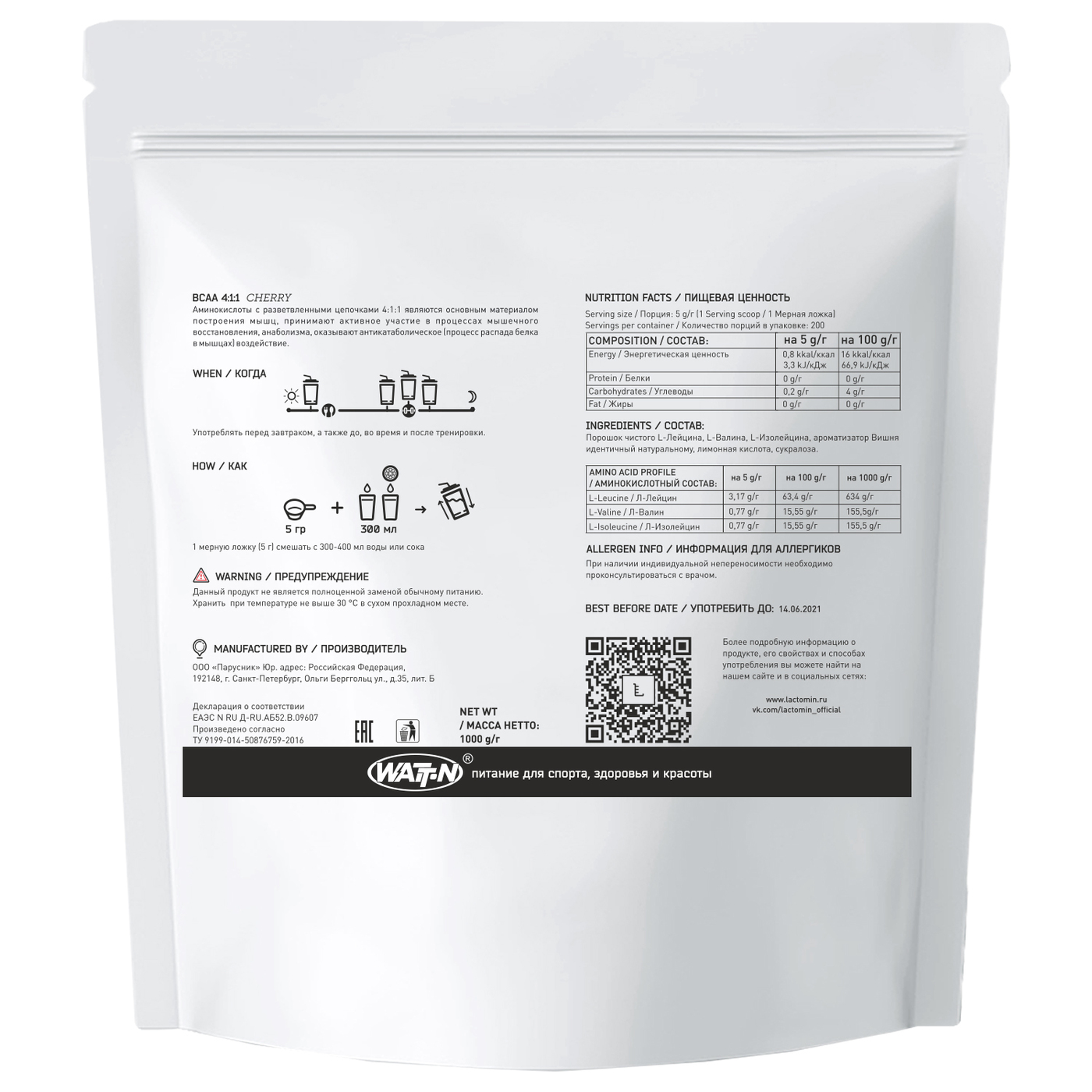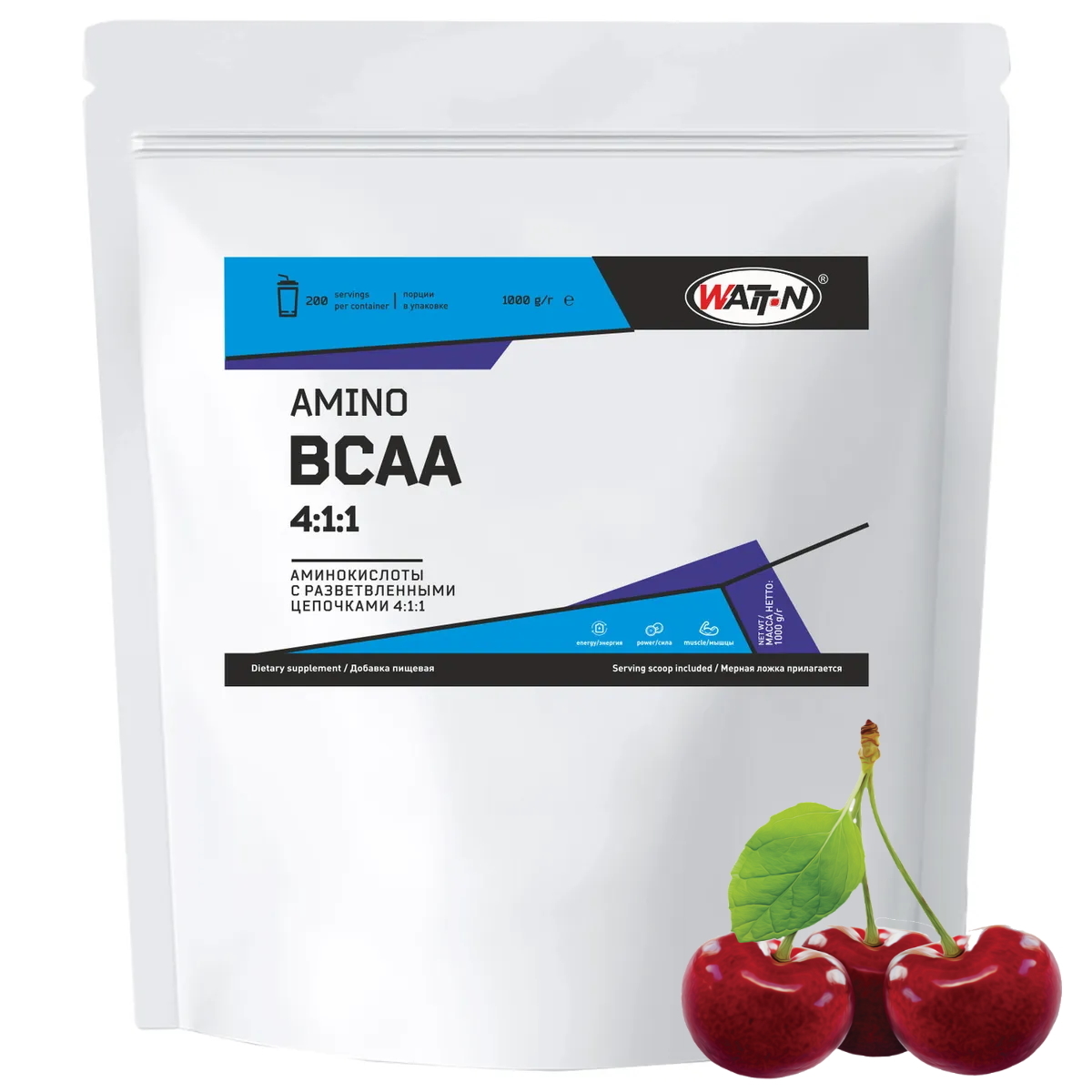WATT NUTRITION, BCAA 4:1:1, 1000 гр. Вишня