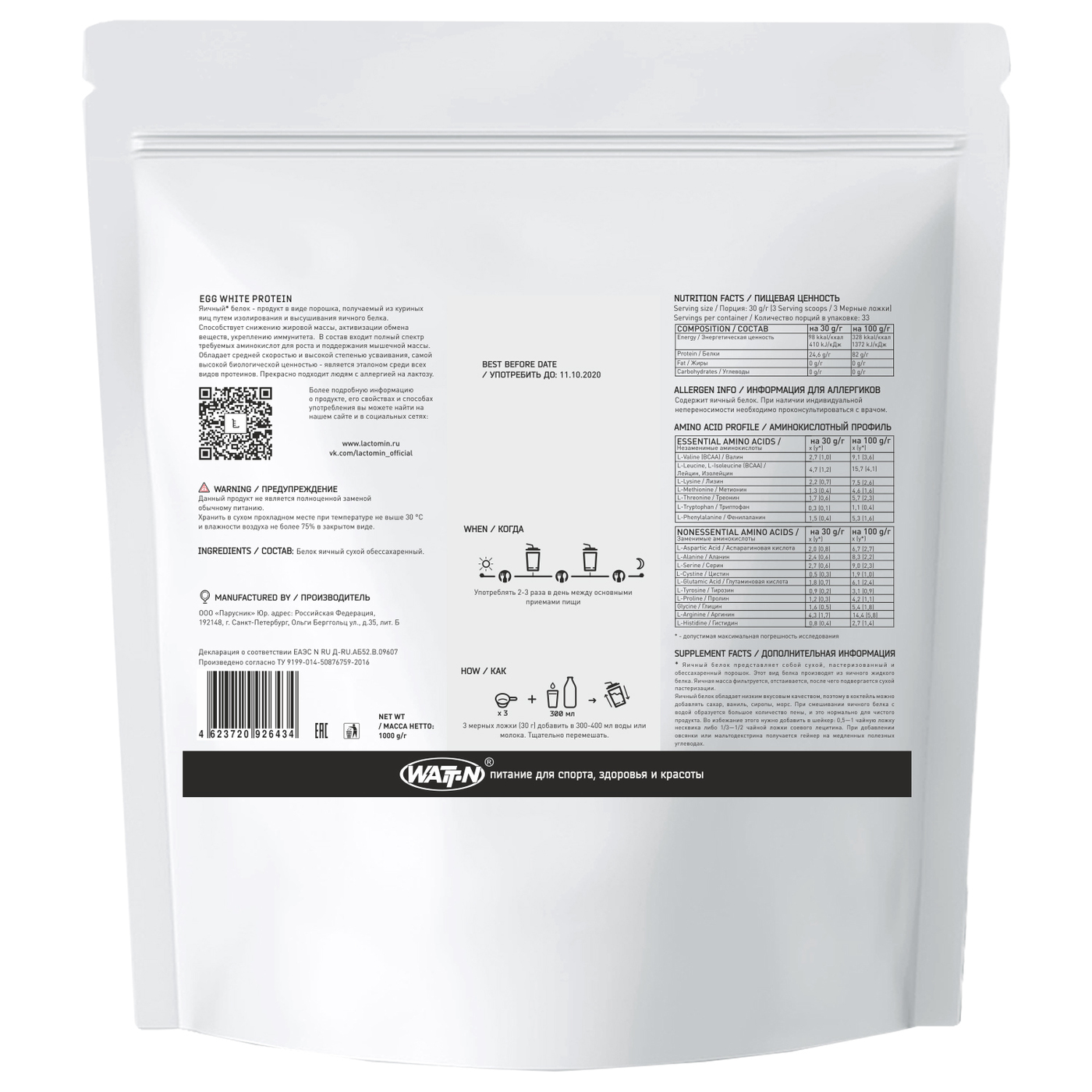 WATTN Egg Protein / Яичный протеин, 1000 гр., натуральный