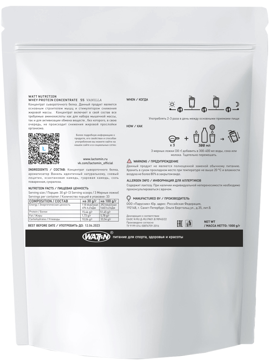 Протеин Whey Protein Concentrate (WPC), 1000 гр, Ваниль