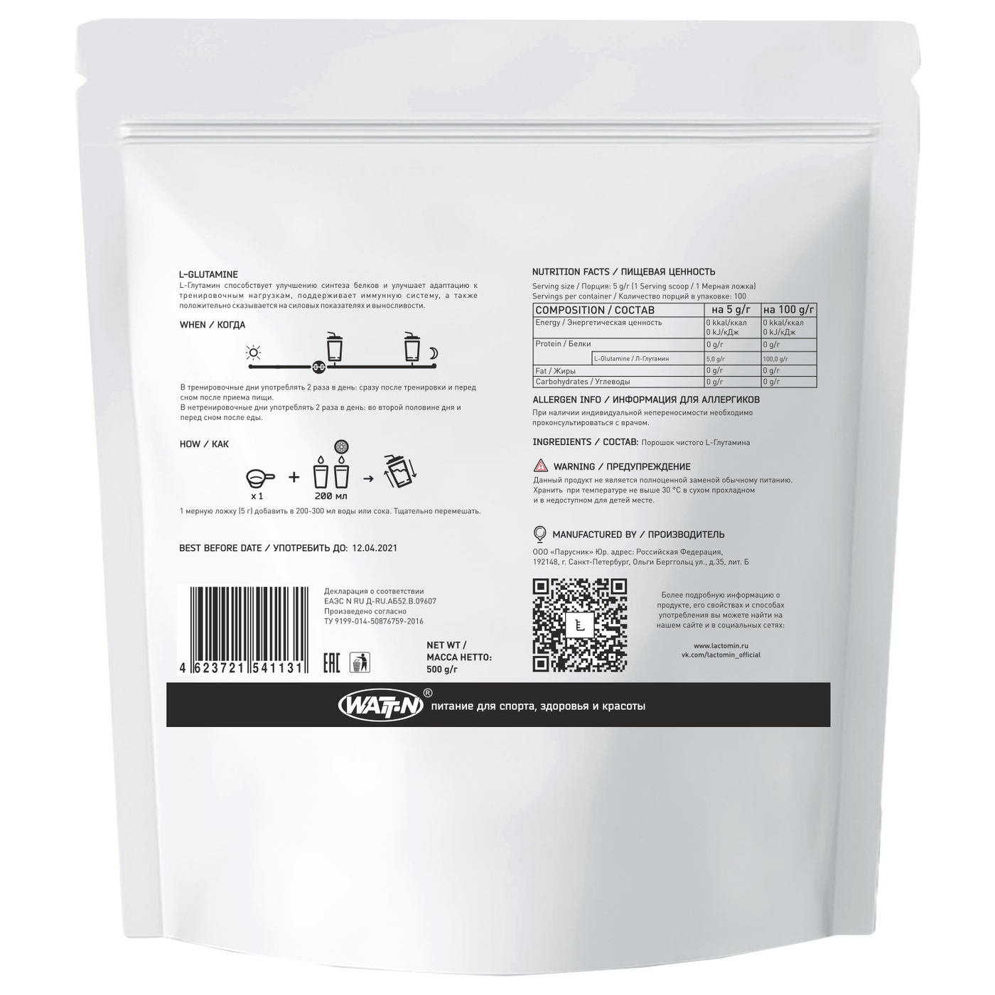 WATT NUTRITION, L- Цитруллин DL- Малат, 200 гр. Пакет.