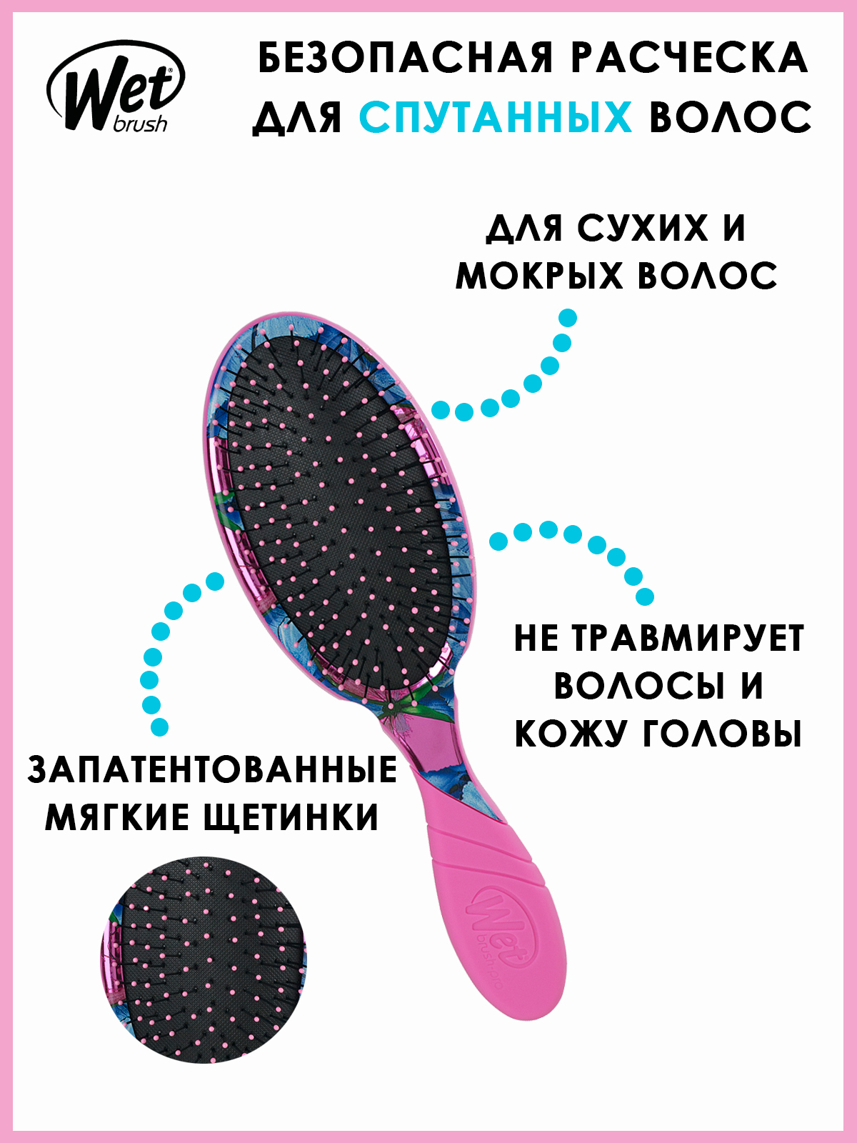 WET BRUSH Расческа массажная со свадебным принтом для спутанных волос PRO BRIDAL DETANGLER - MRS