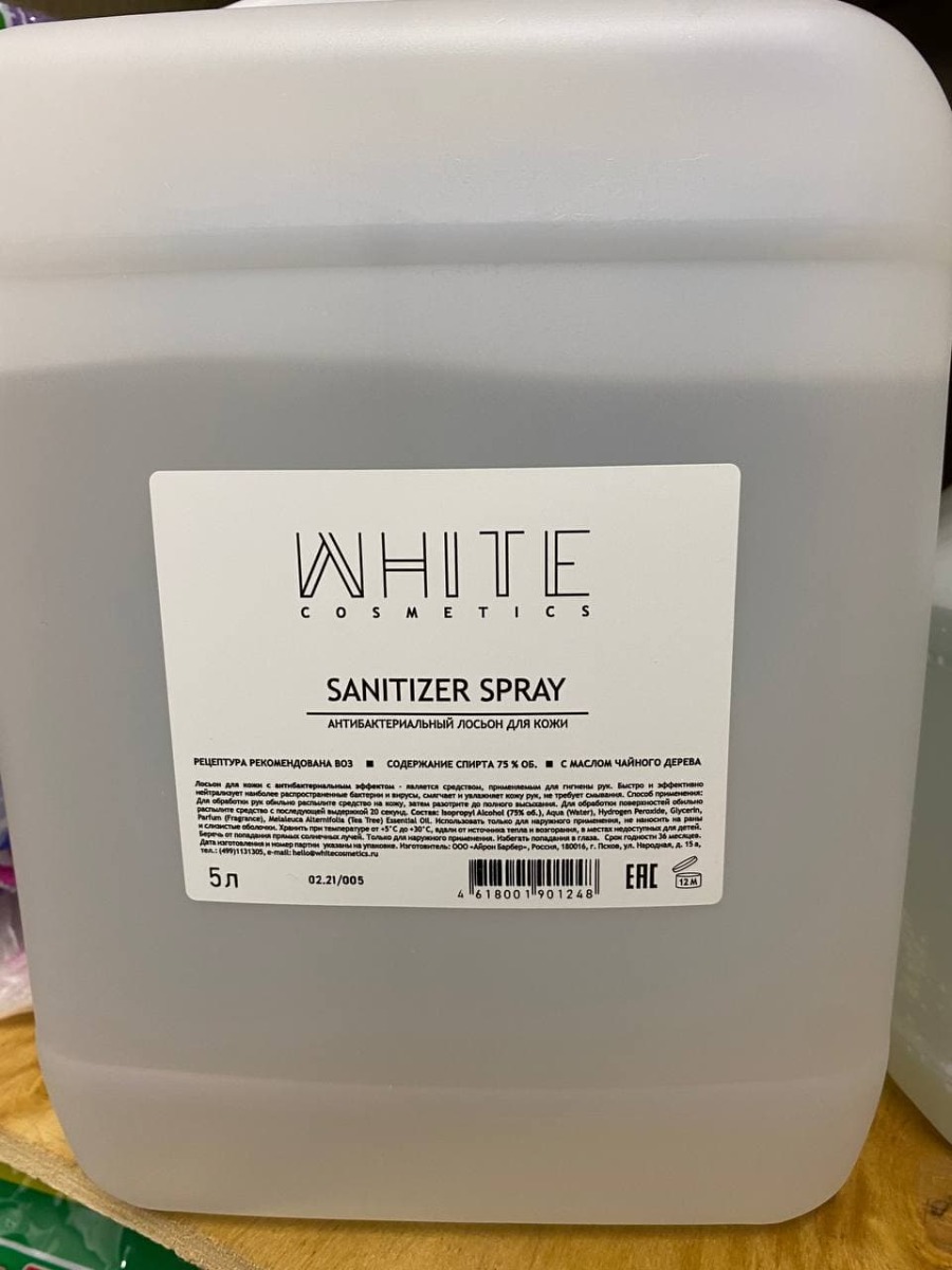 WHITE / Антисептик спрей для рук и поверхностей санитайзер противовирусный 5 литров 5000 мл