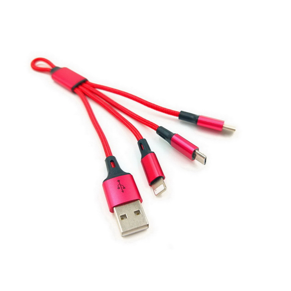 DATA-кабель микро-USB/USB-8pin/Type-C, для пауэрбанков (CBB600-U8MUTC-2R) WIIIX 20 см, красный