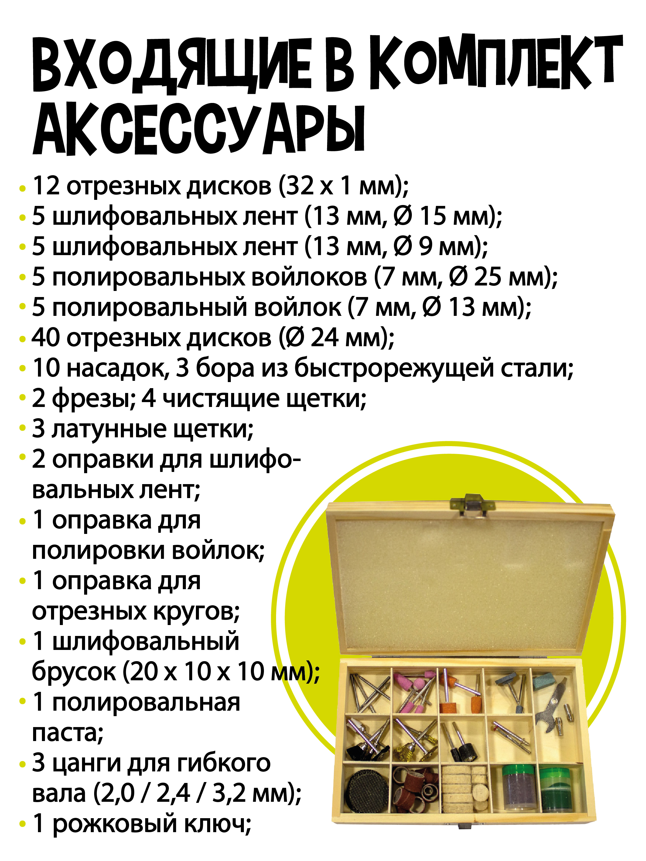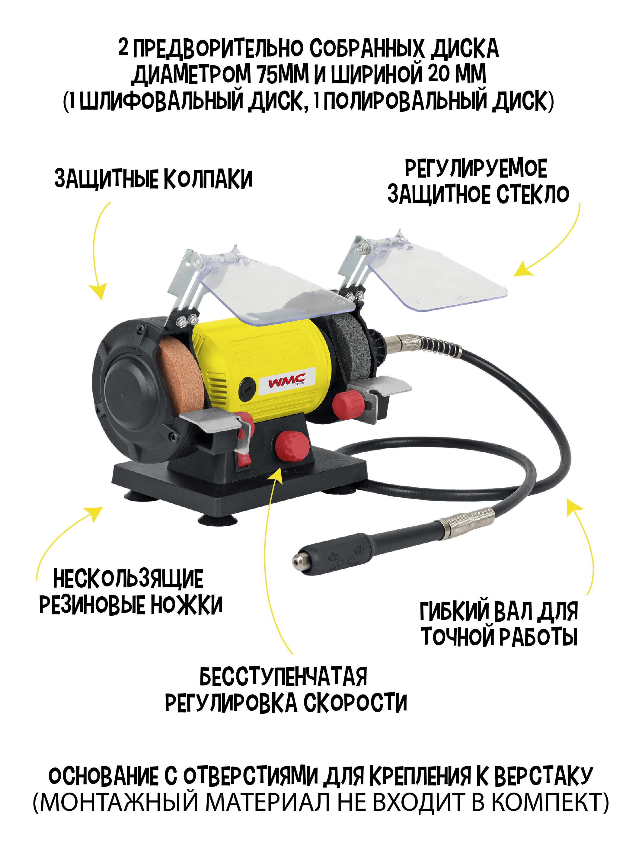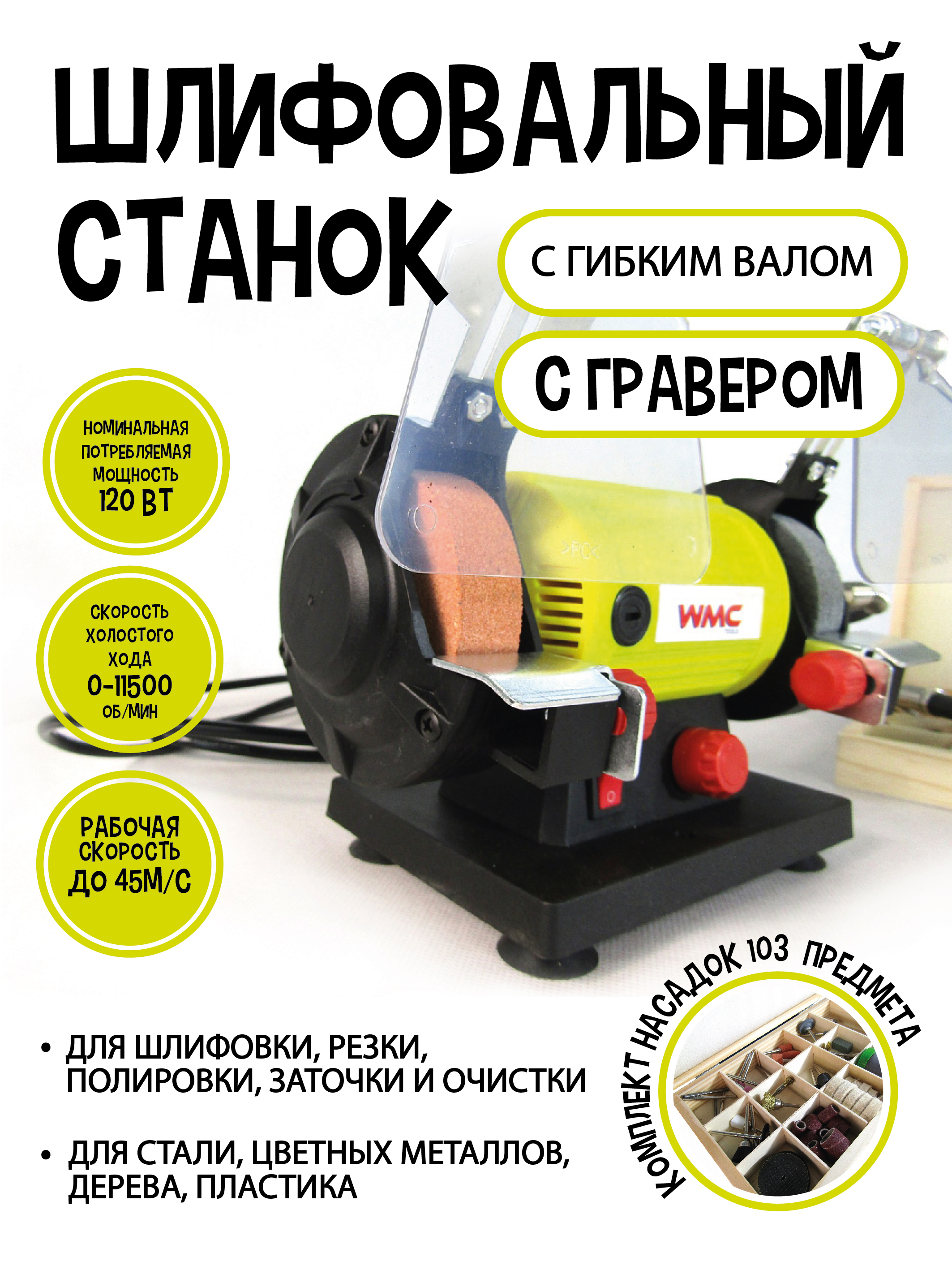 Станок WMC-S1E-DH02-75: точильно-шлифовальный+гравер на гибком валу с набором аксессуаров