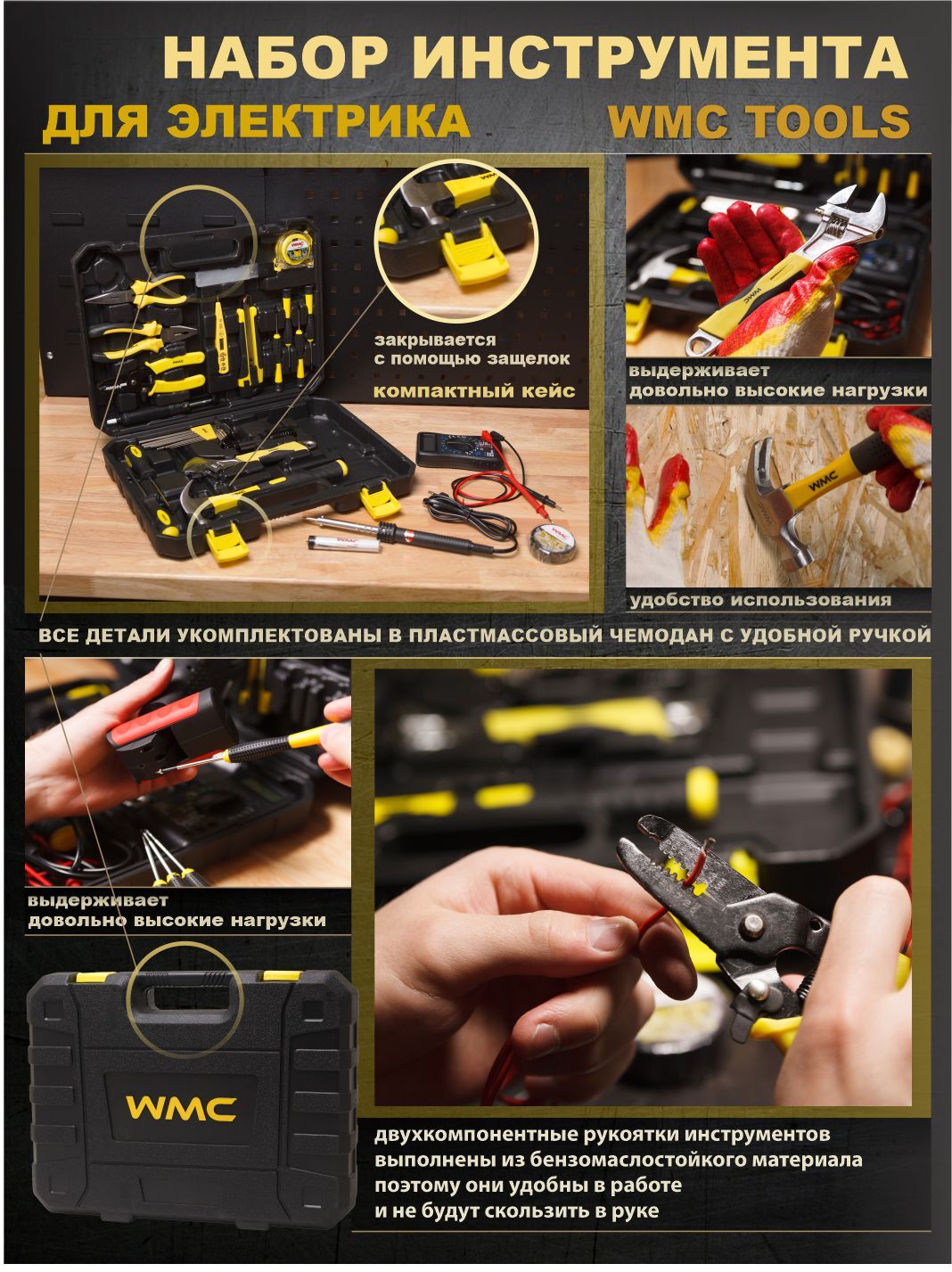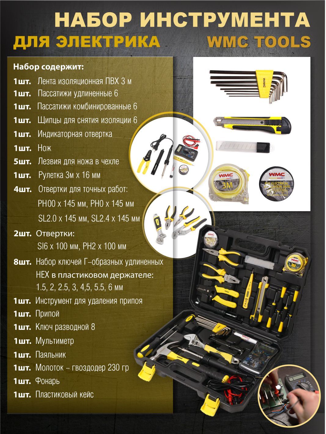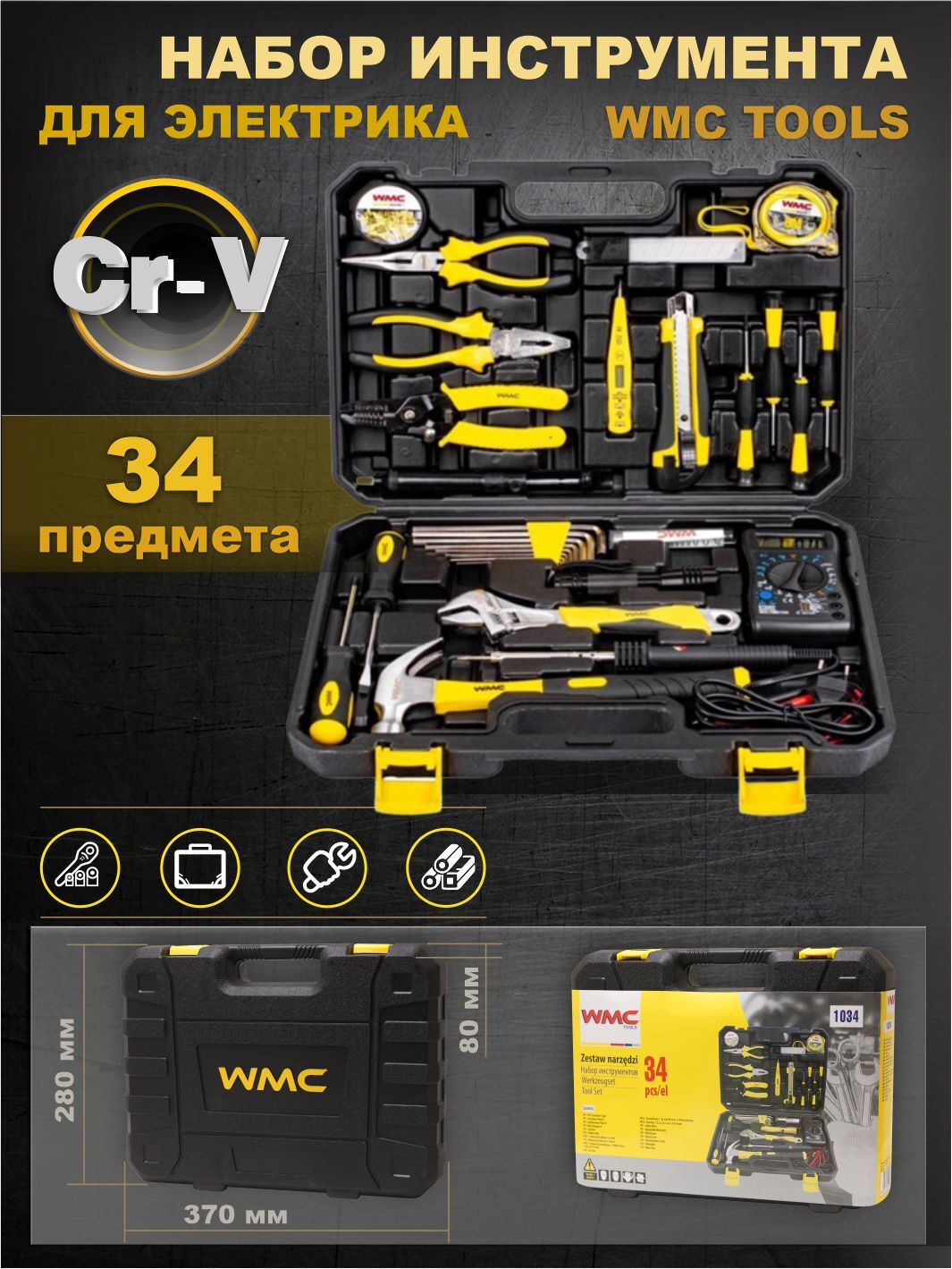 Набор инструментов 34пр, для электрика WMC TOOLS 1034