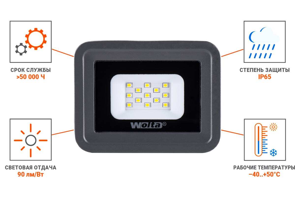 Прожектор Wolta, WFL-10W/06 5700K 10 Вт SMD IP65 900 лм 5700 К