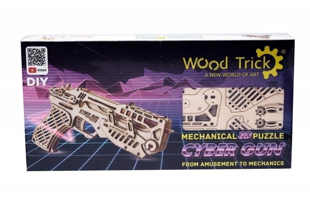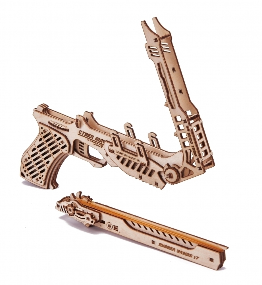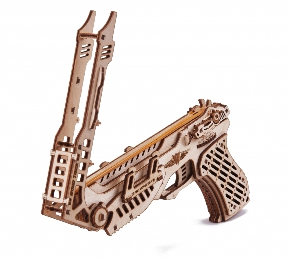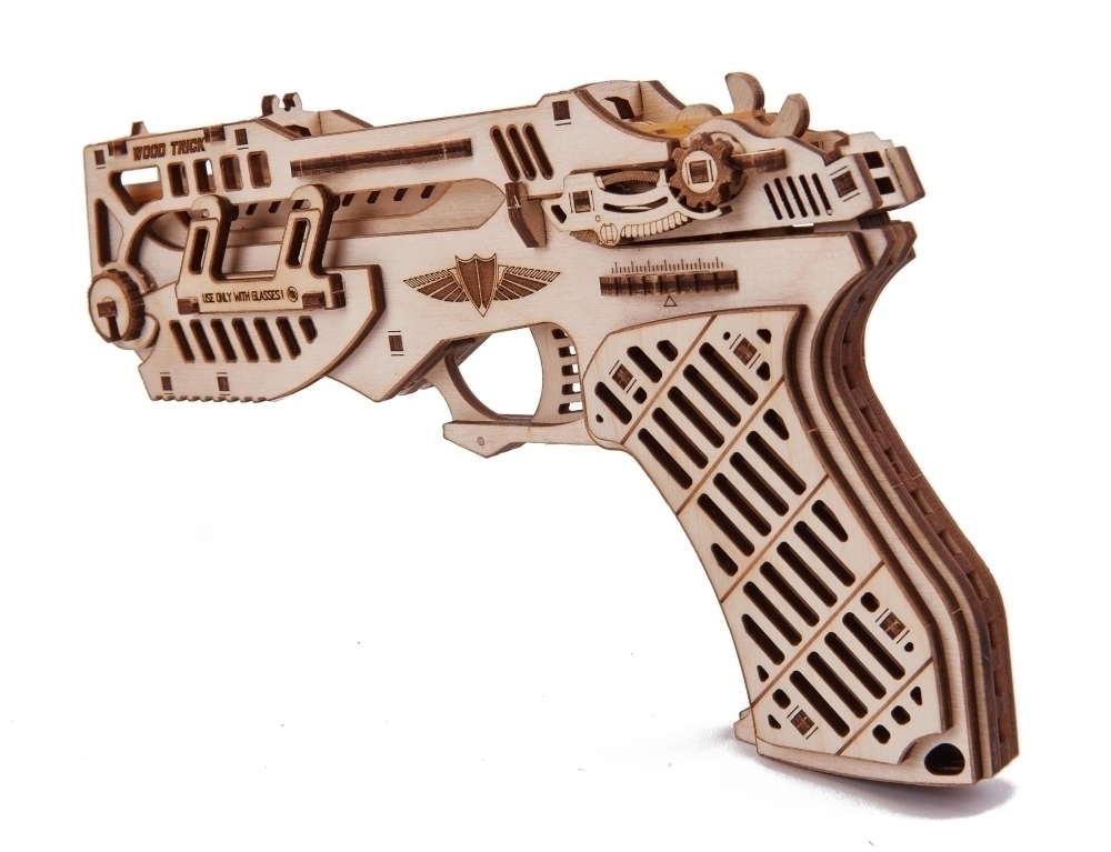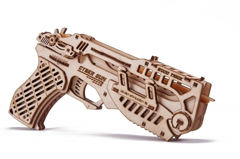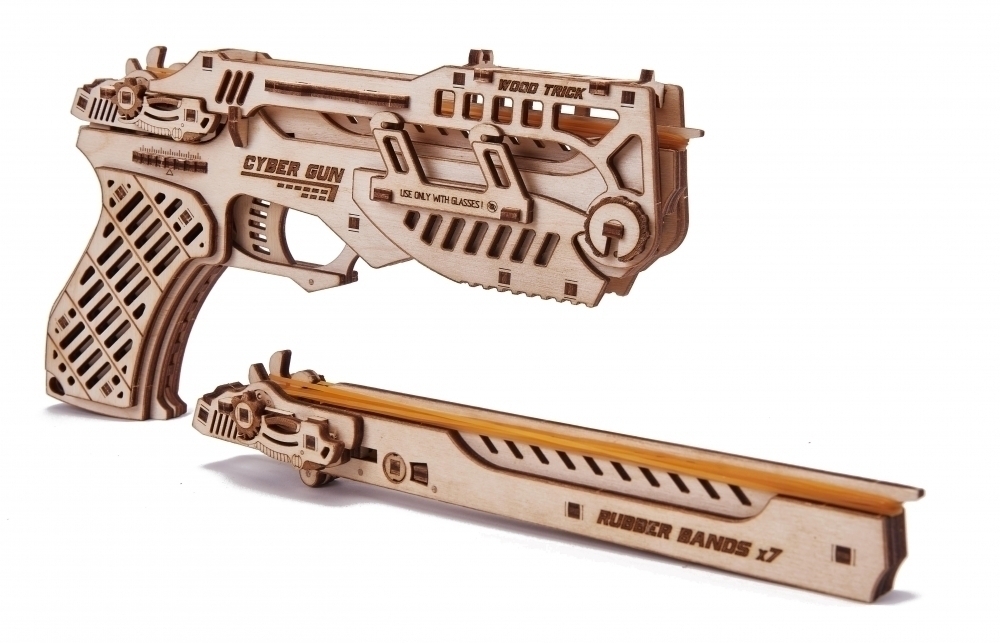Сборная модель, деревянный конструктор Wood Trick Пистолет резинкострел "Сайбер Ган"