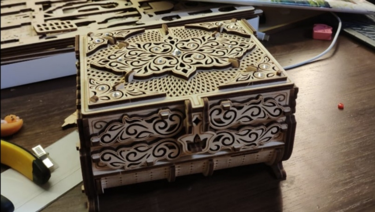 Cборная деревянная модель конструктор Wood Trick Шкатулка, декорированная кристаллами Swarovski