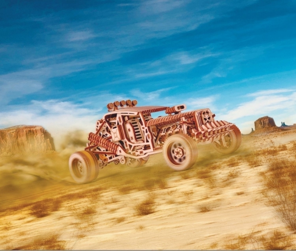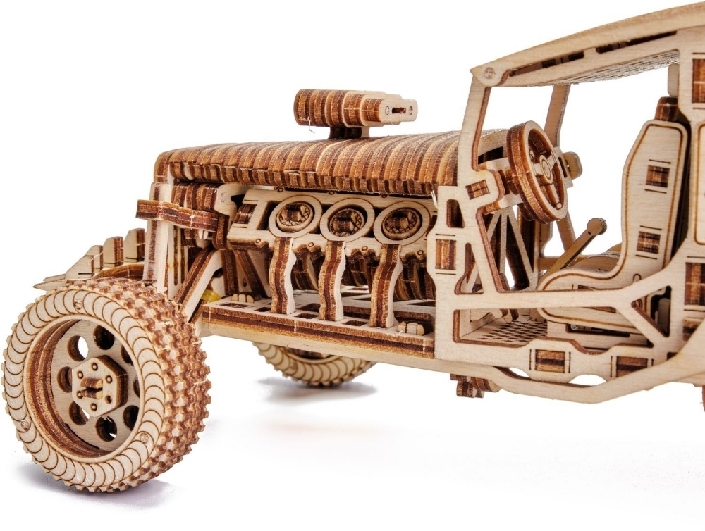 Механическая сборная модель деревянная, конструктор деревянный Wood Trick Квадроцикл (Внедорожник)