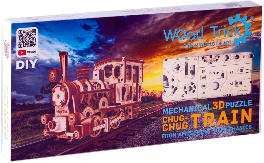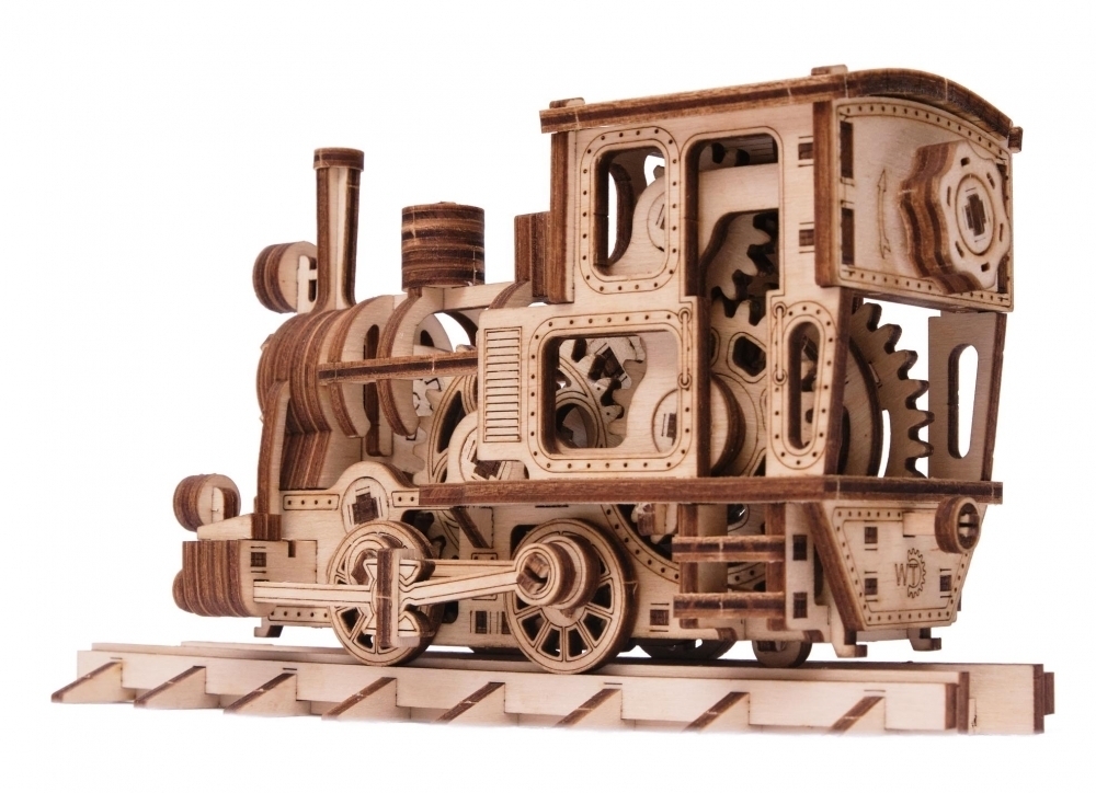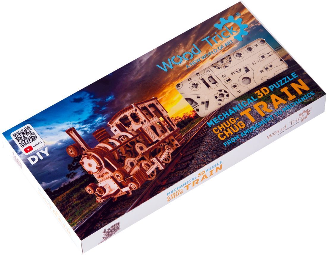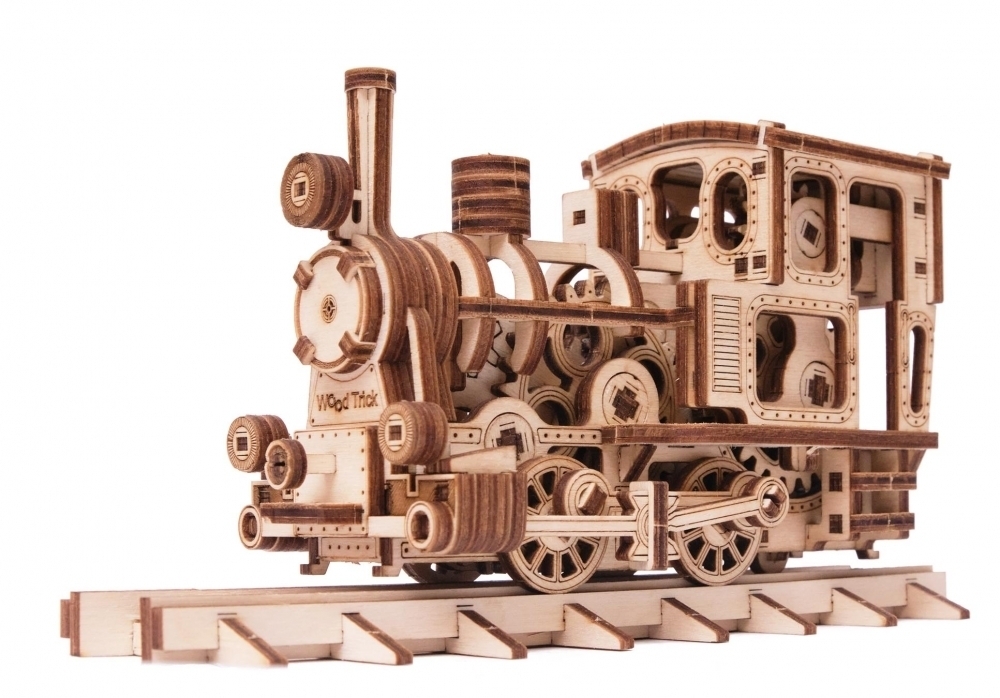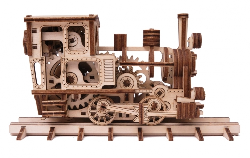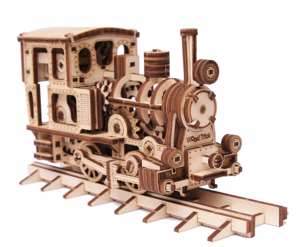 Механическая сборная деревянная модель Wood Trick Паровозик с рельсами
