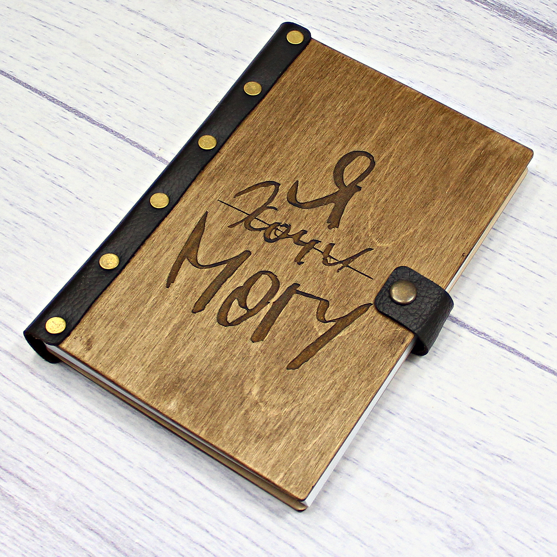 Деревянный ежедневник "Я могу", цвет - палисандр, изображение - гравировка.