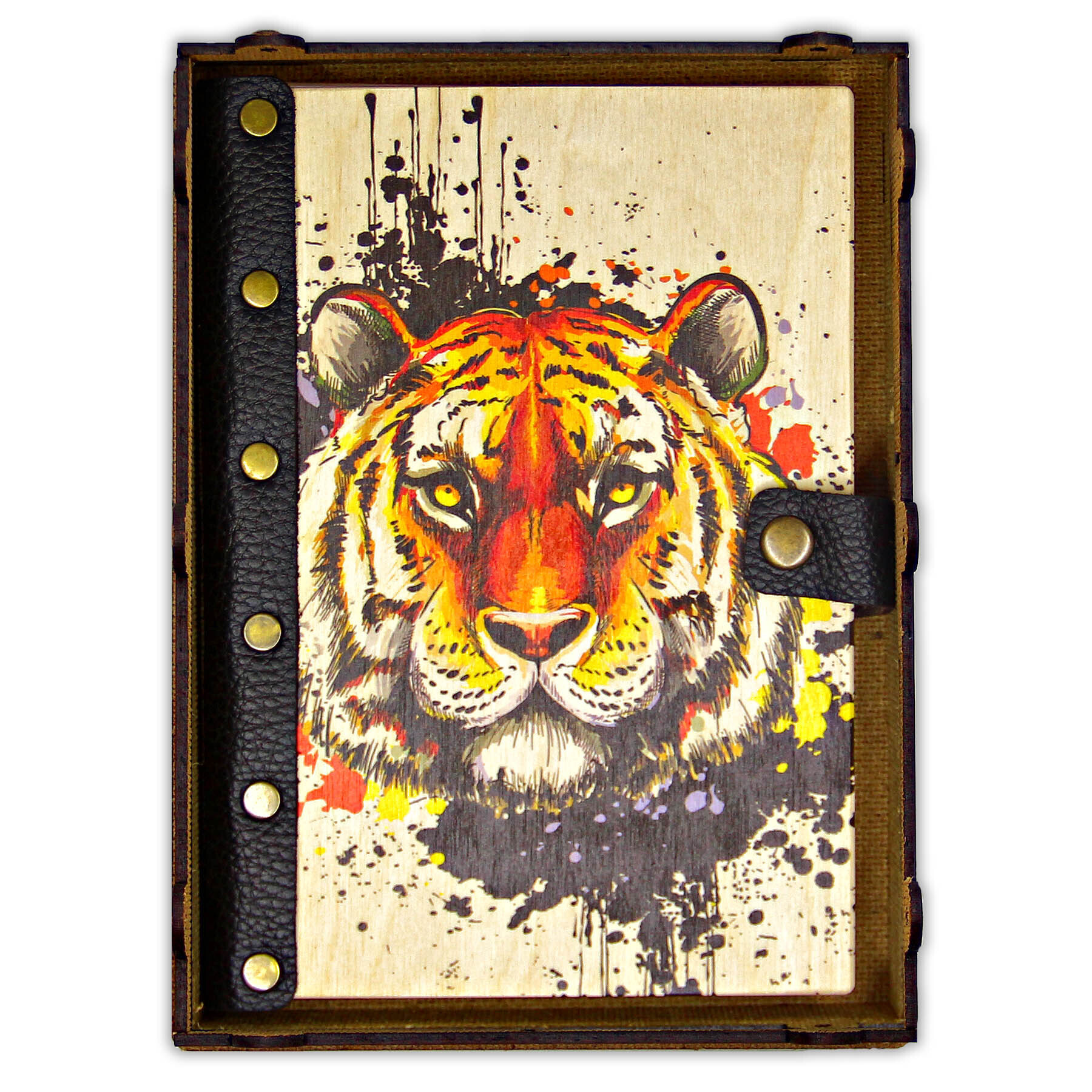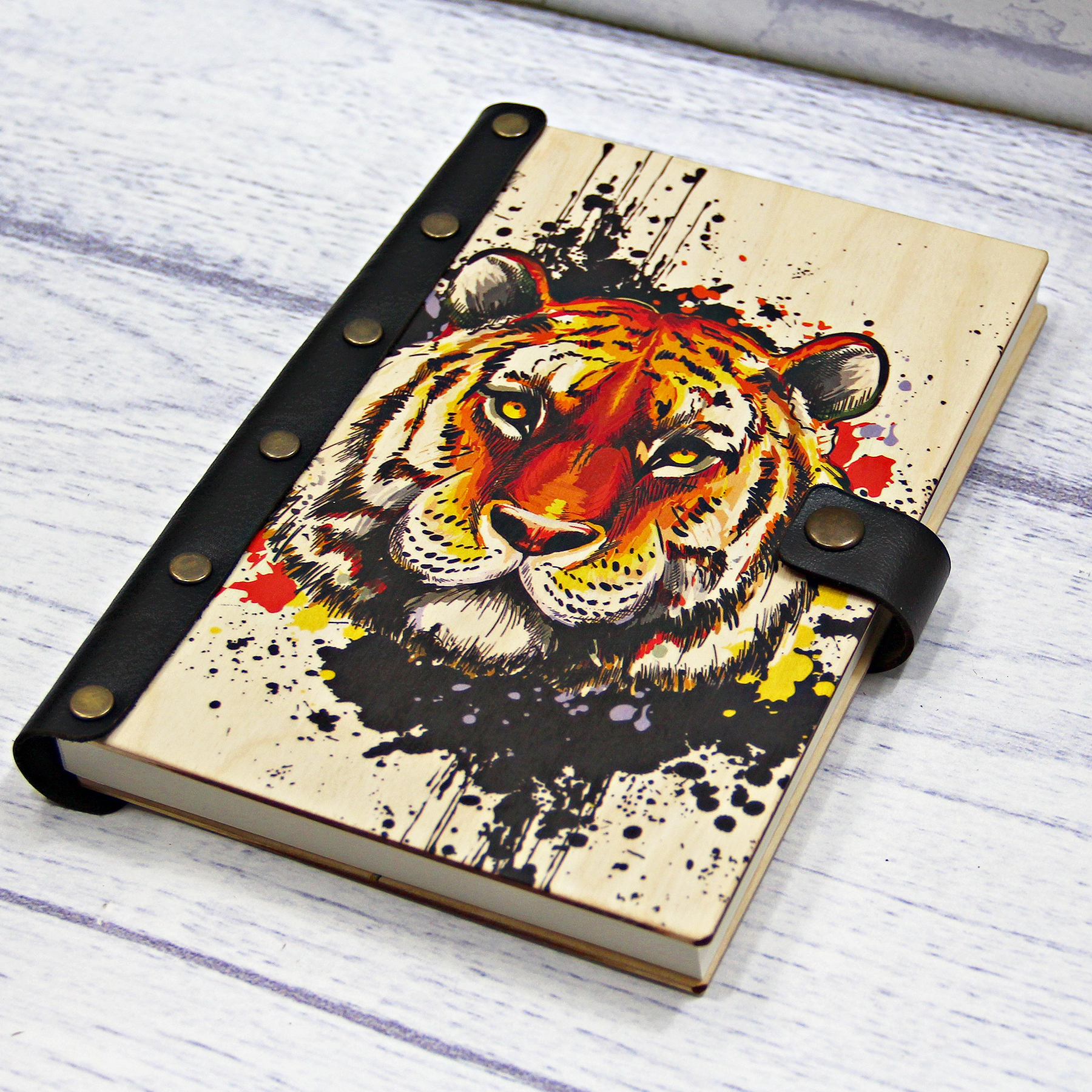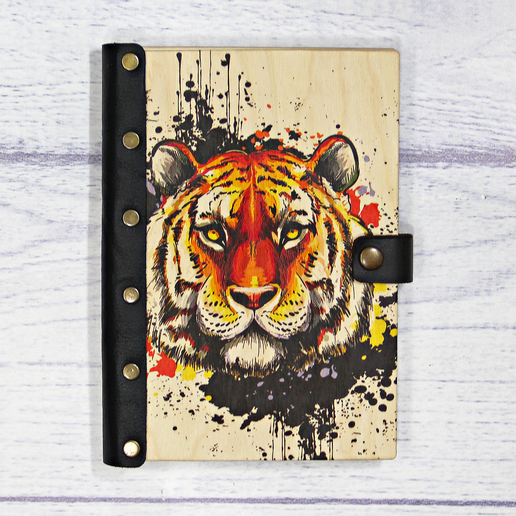 Деревянный ежедневник с принтом, "Котик в цветах"