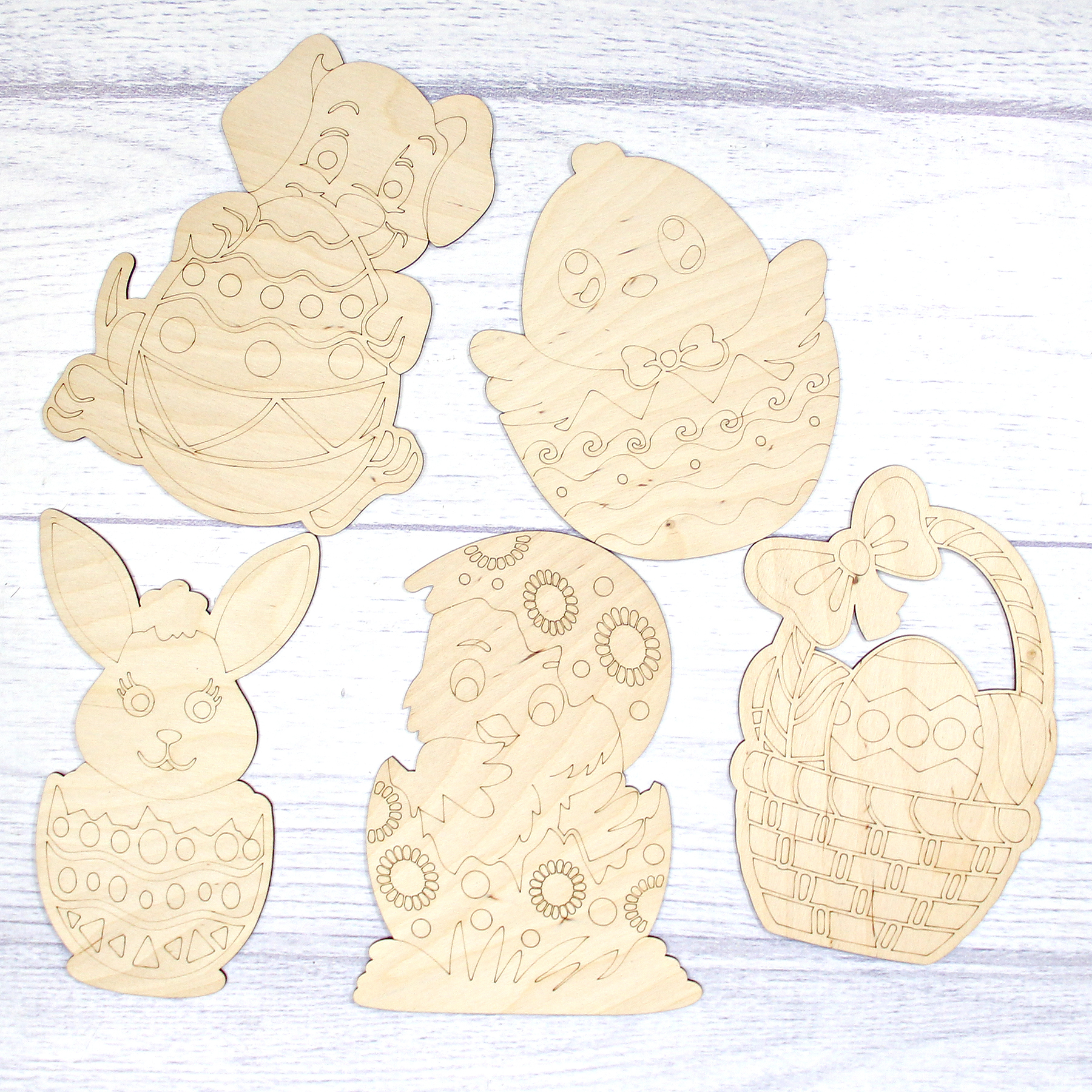 Набор больших фигурок - раскрасок из дерева "Светлая Пасха", 15х21 см / раскраска / выжигание