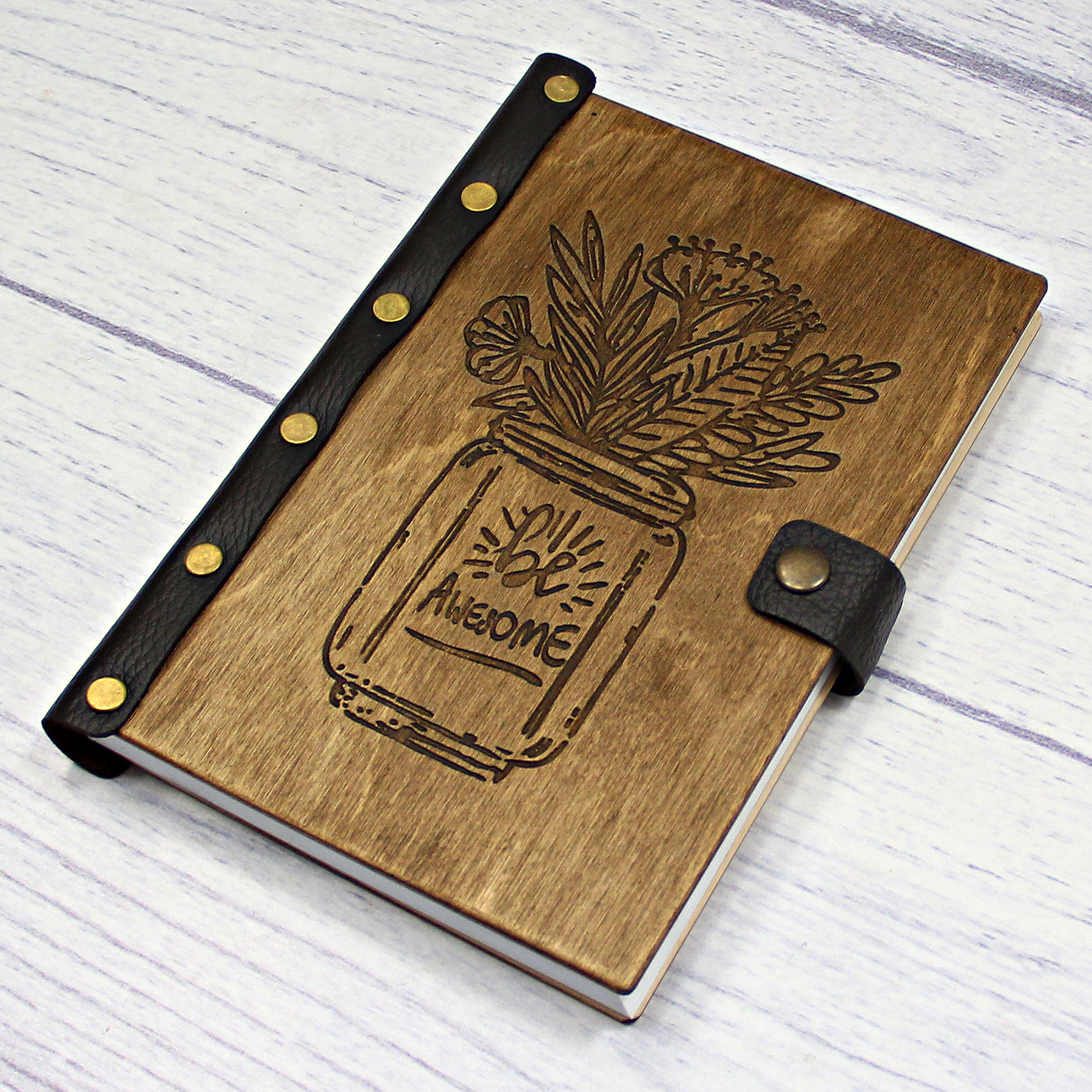 Деревянный ежедневник "Be awesome", цвет - палисандр, изображение - гравировка.
