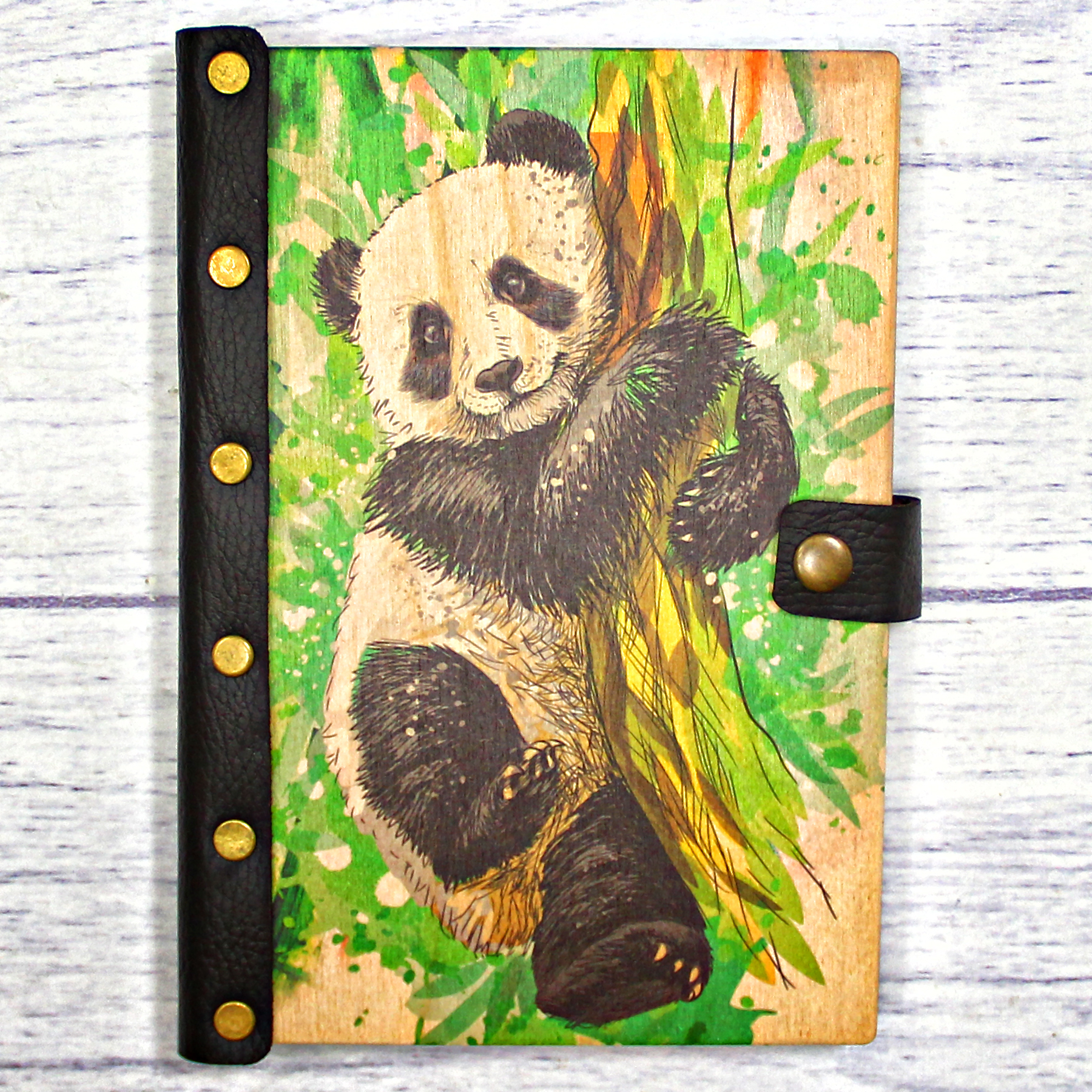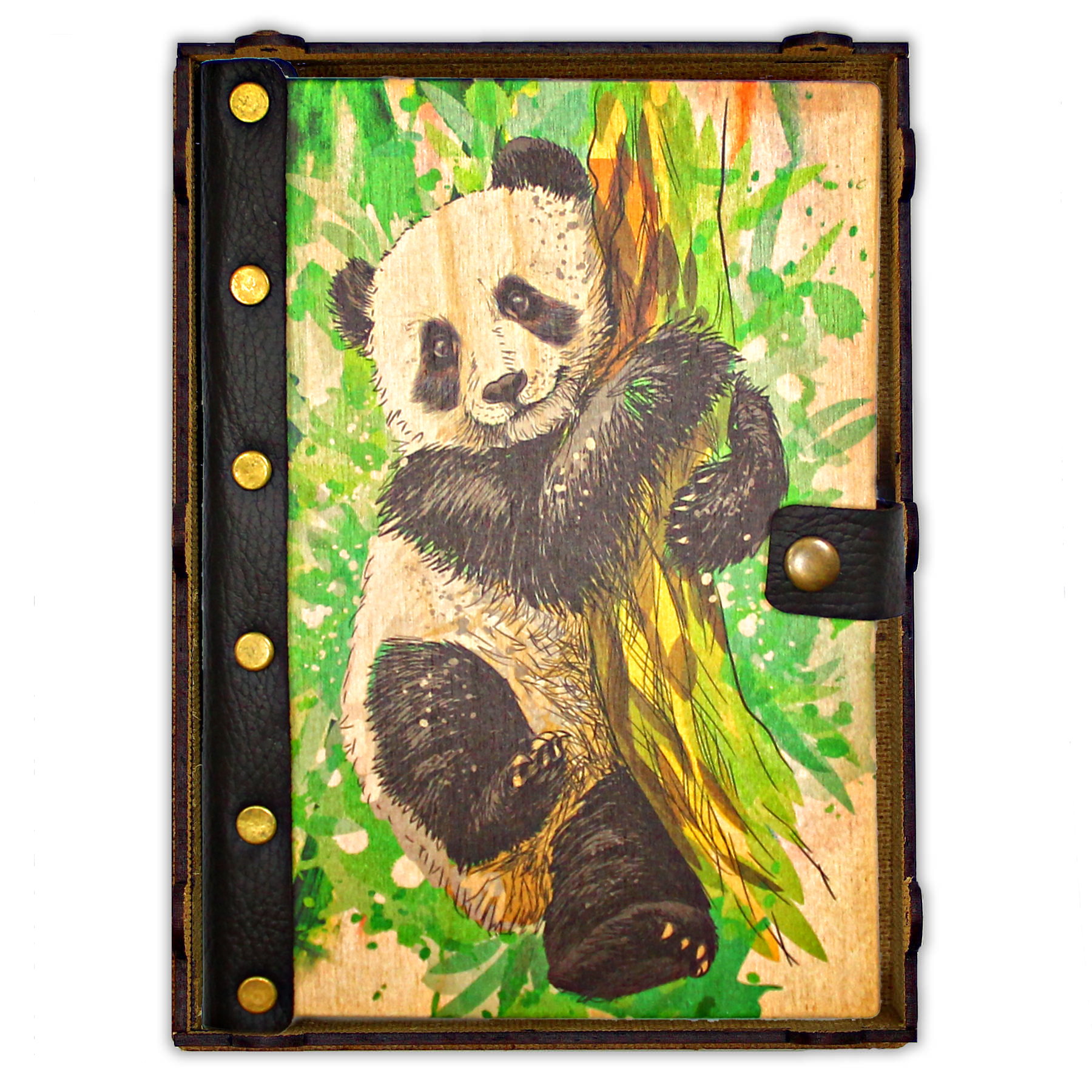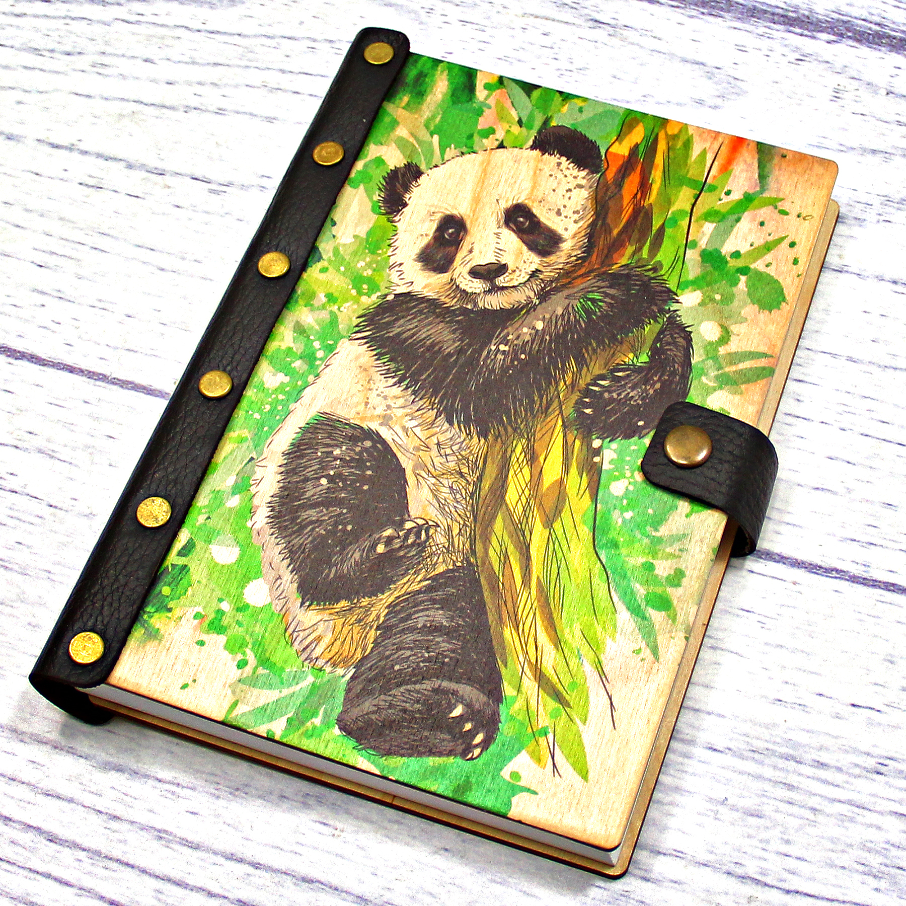 Деревянный ежедневник с принтом, "Панда"