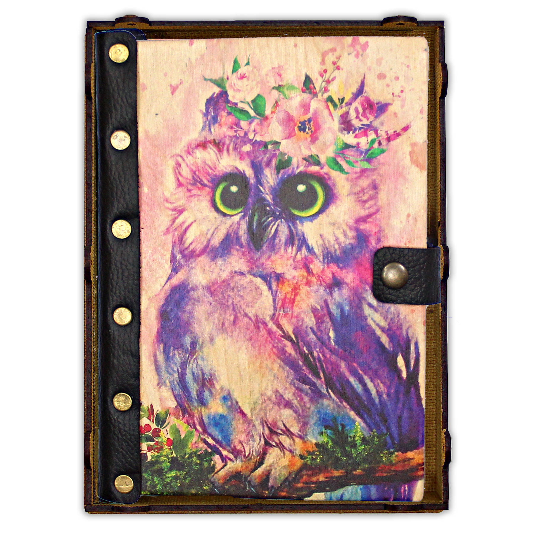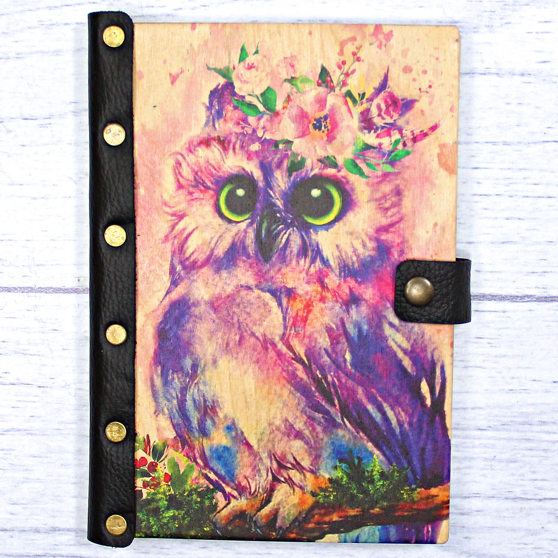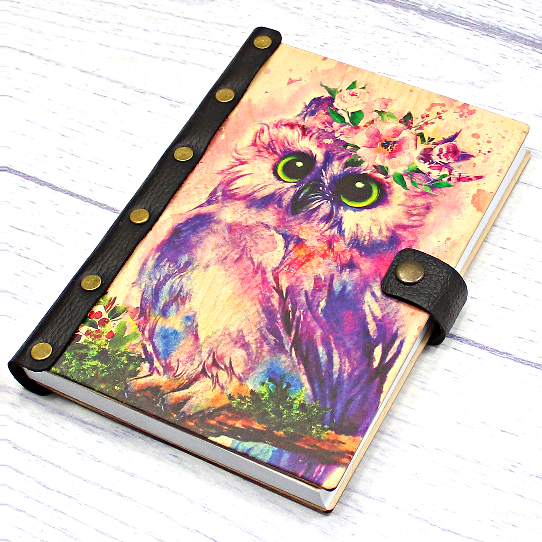 Деревянный ежедневник с принтом, "Совушка"