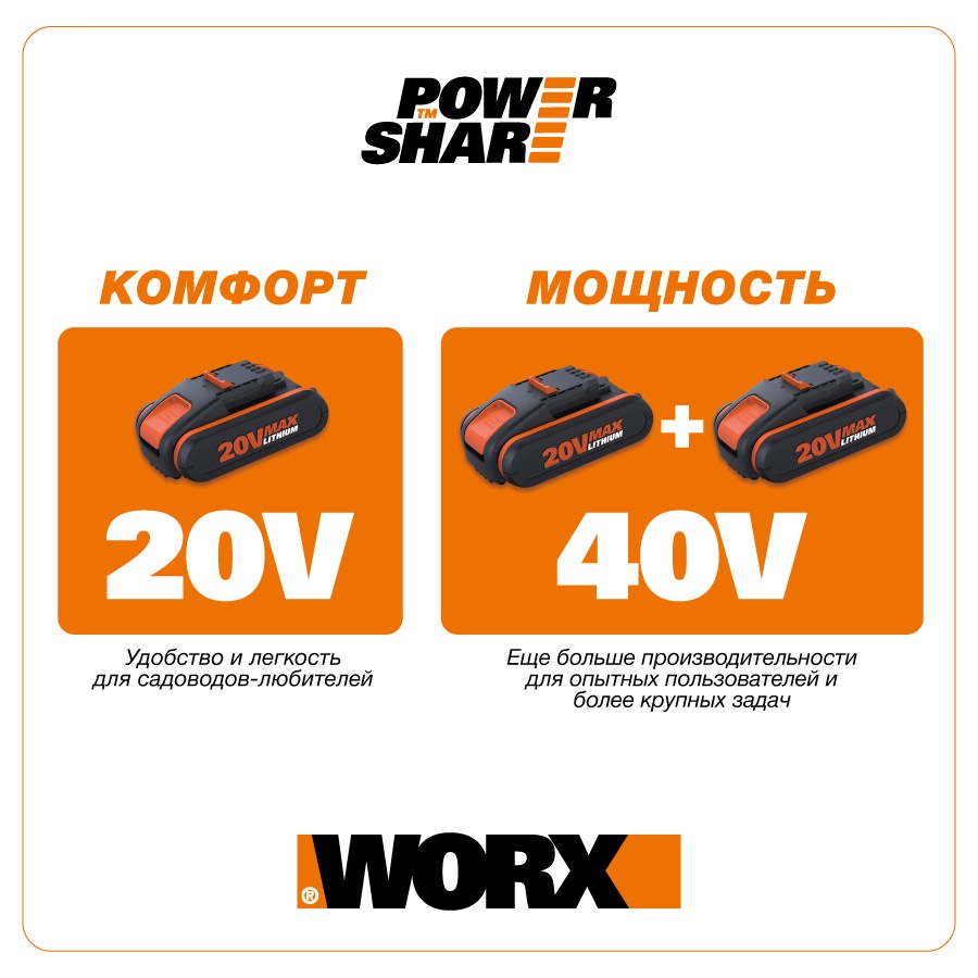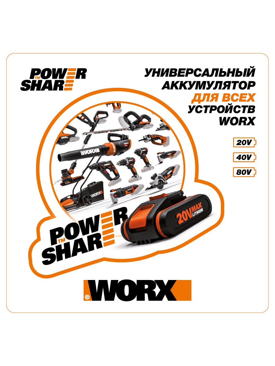 Триммер аккумуляторный Worx WG157E, 25 см, 20 В, АКБ 1,5 А*ч, ЗУ 0,4 А, коробка