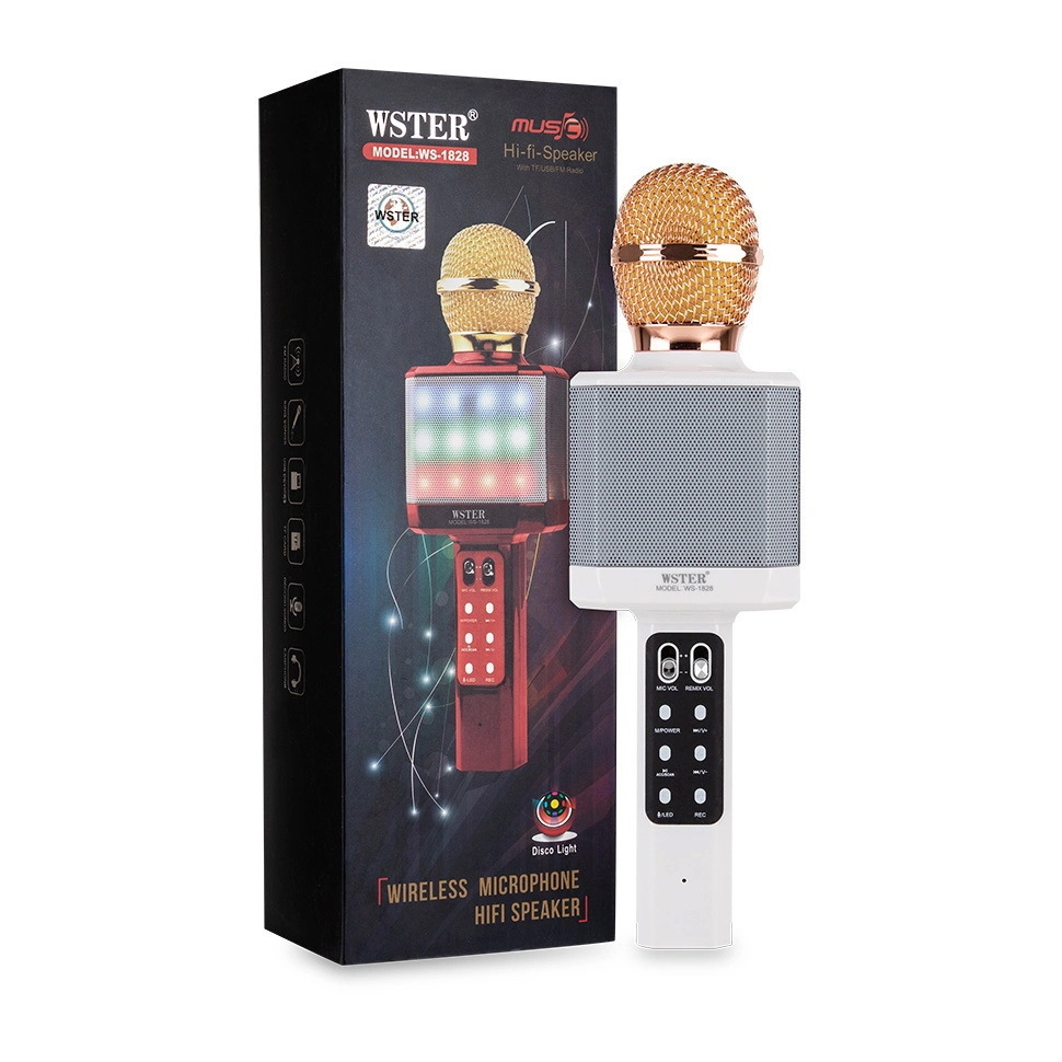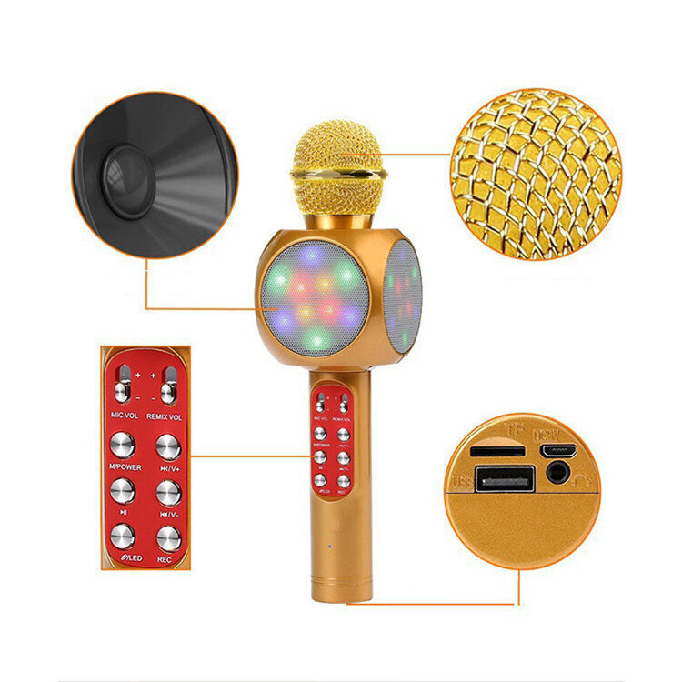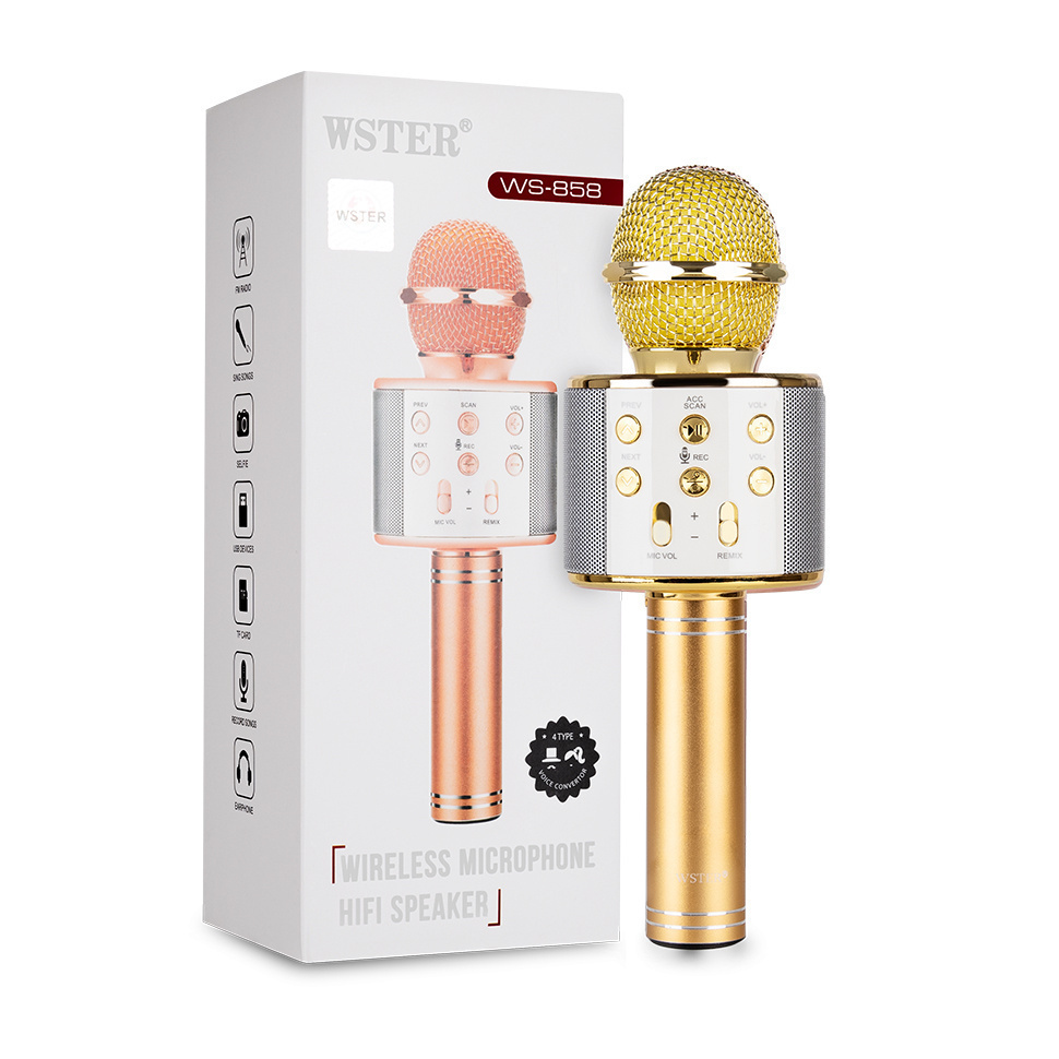 Микрофон для живого вокала WSTER Оригинальный беспроводной караоке-микрофон WS-858, золотой