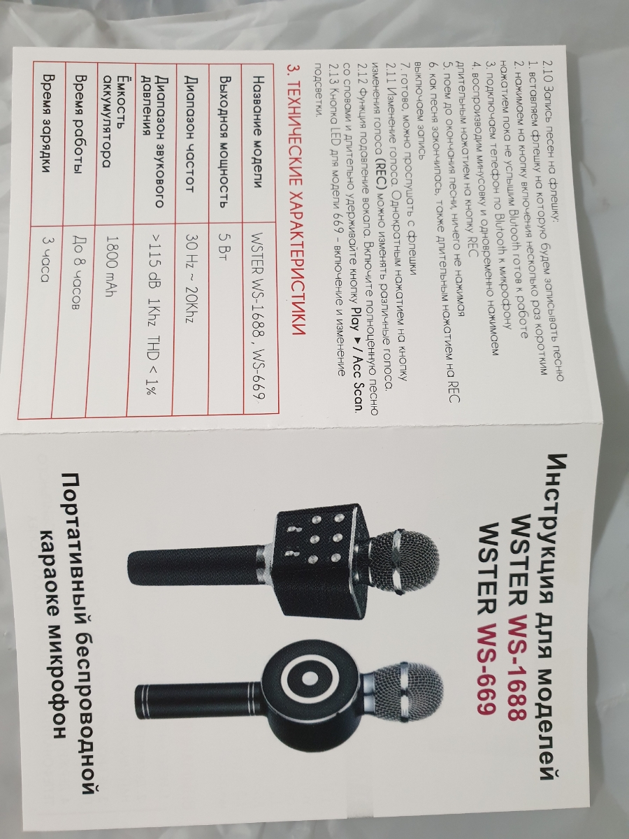 Микрофон Универсальный WSTER оригинальный беспроводной караоке-микрофон WS-2911/