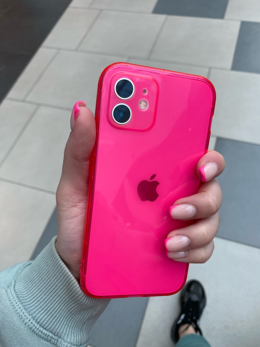 Чехол для Apple iPhone 12 прозрачный малиновый