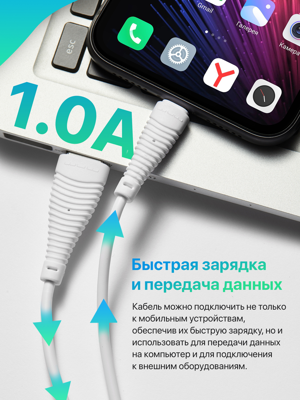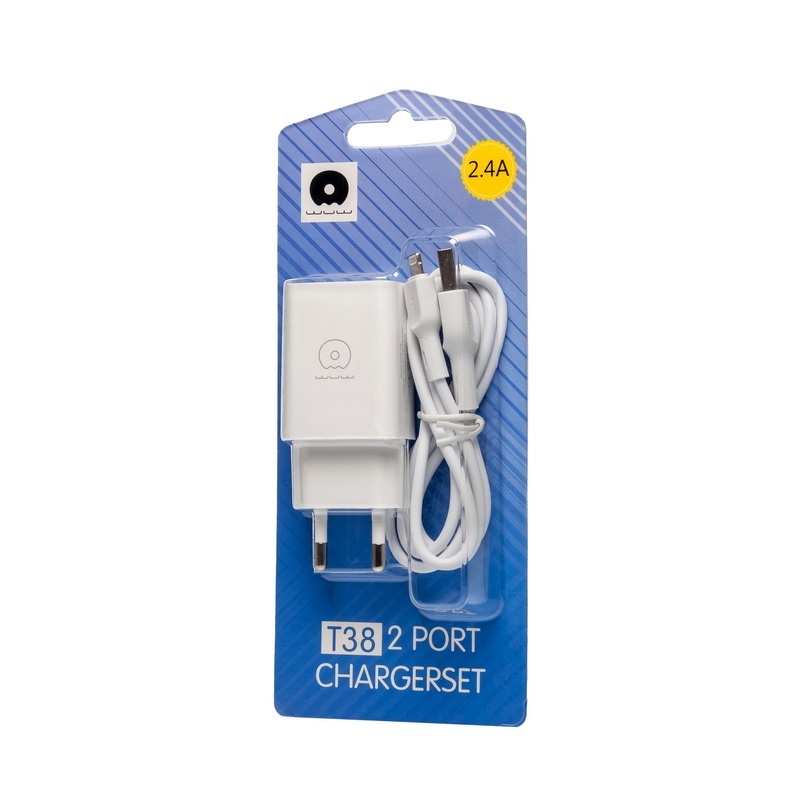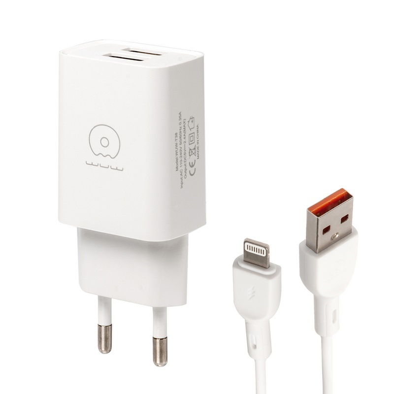 Сетевое зарядное устройство / Зарядка / СЗУ + кабель Lightning / WUW T38, белое, 2.4A, 2USB