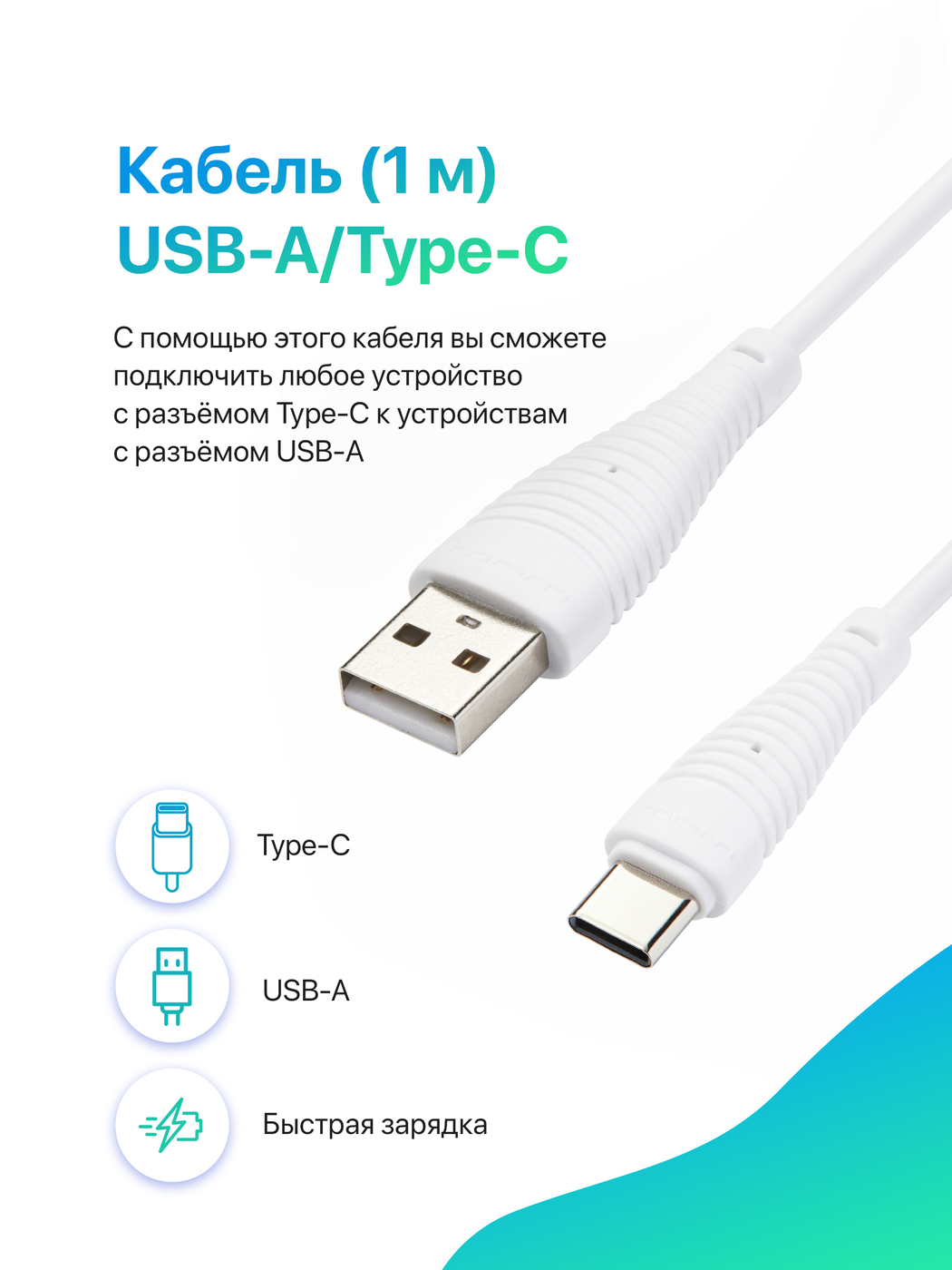 Кабель Type C, 1.2 м, усиленный прорезиненный разъем, белый, WUW-X76