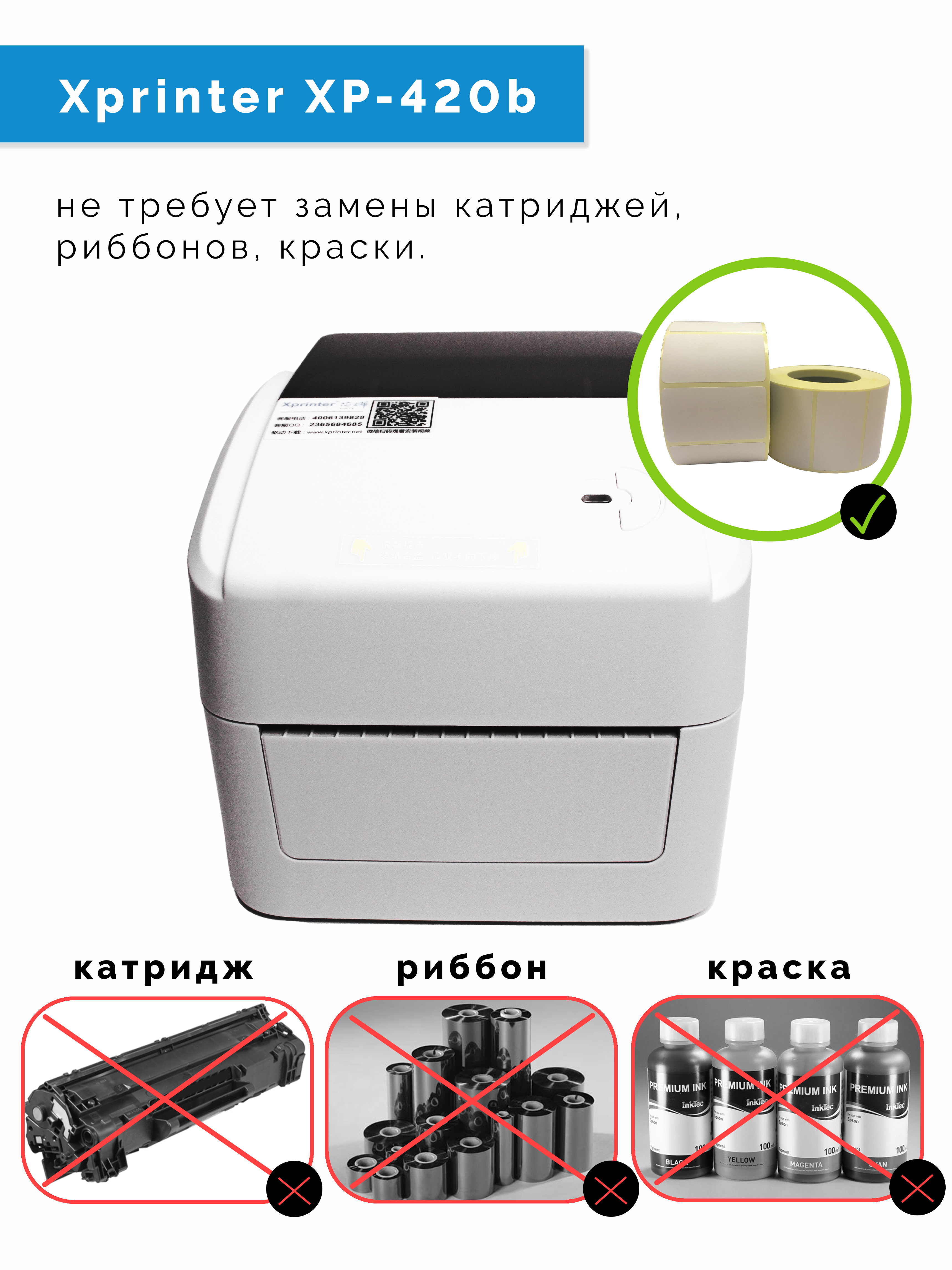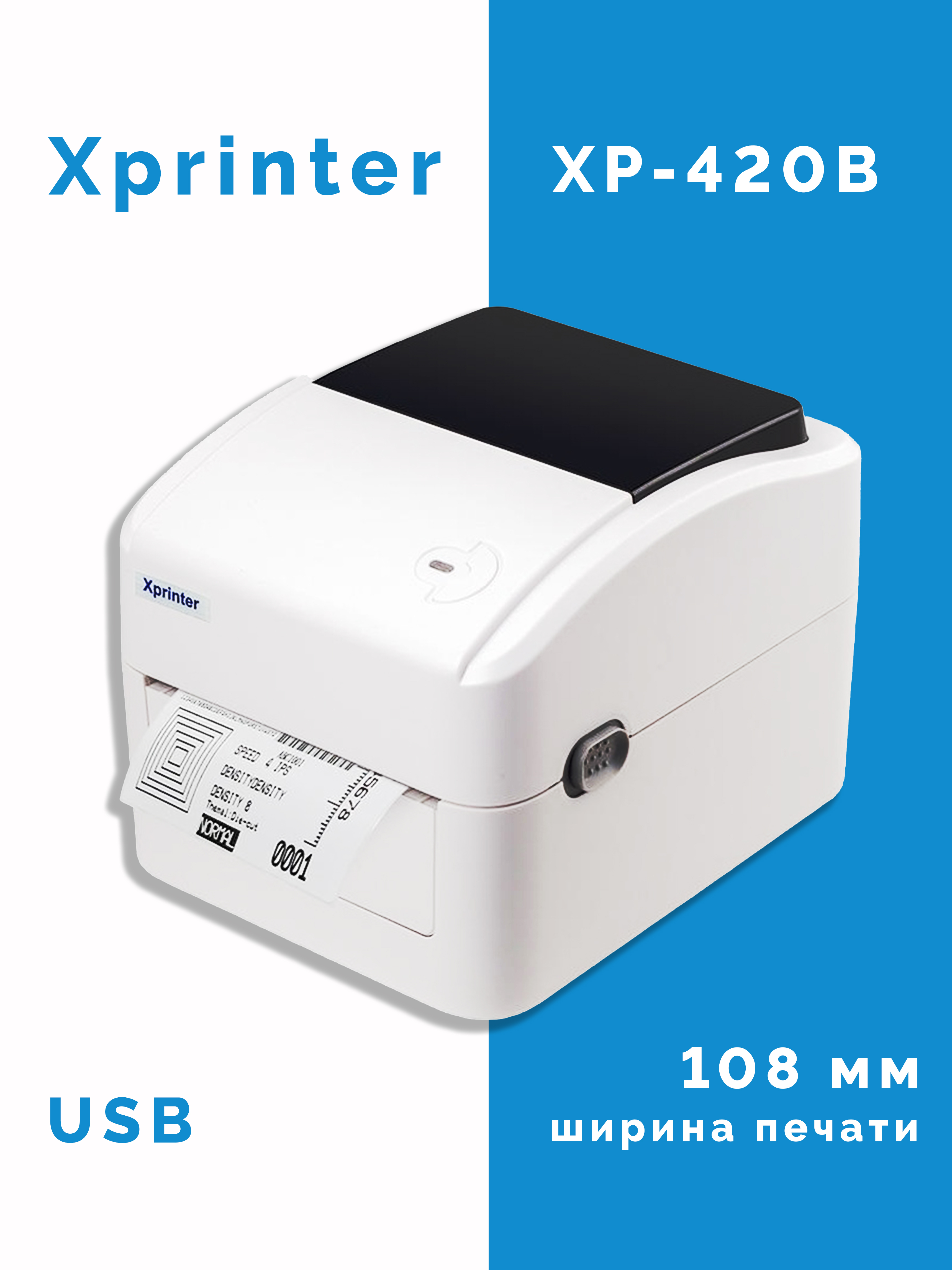 Термальный принтер этикеток Xprinter XP-420B white белый USB