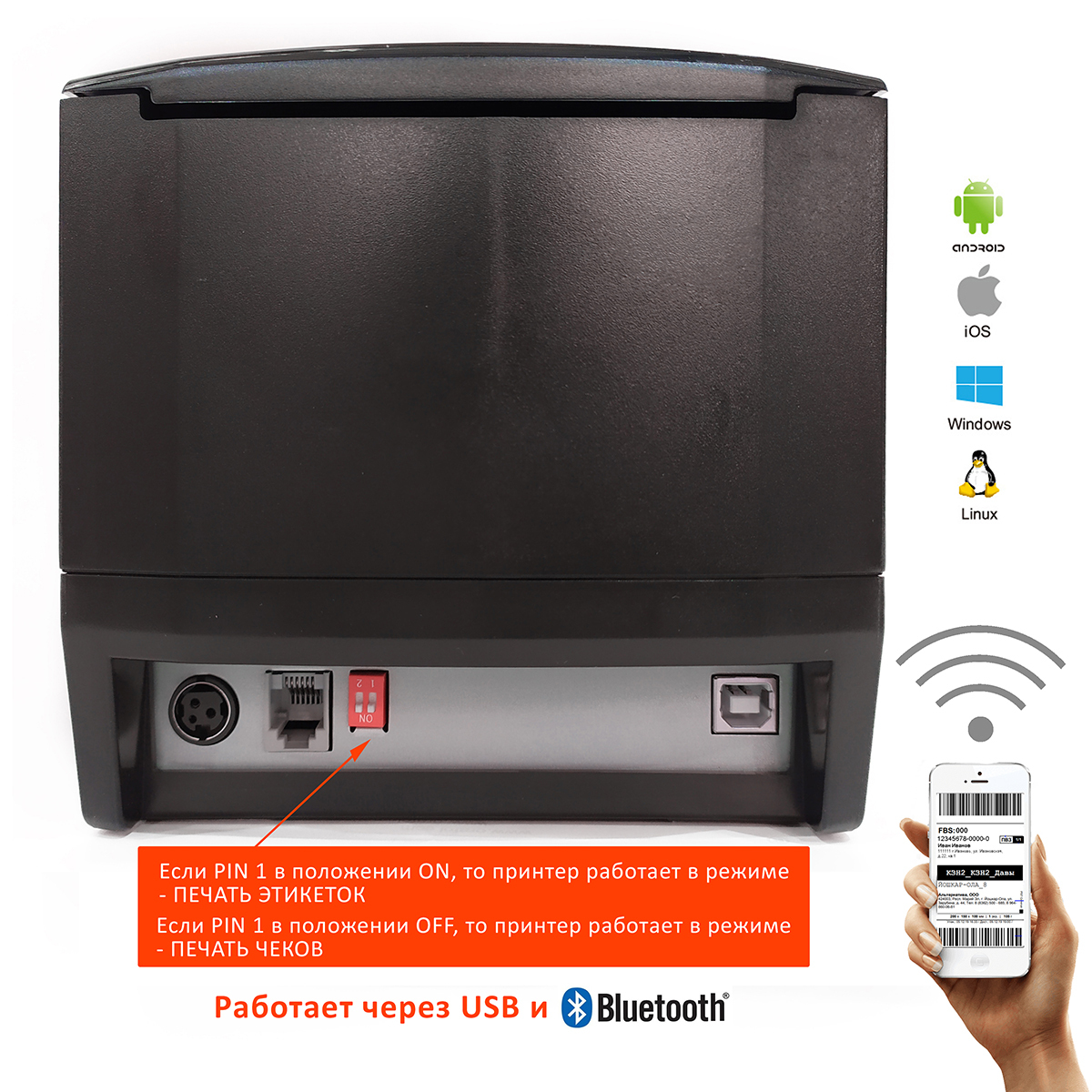 Термопринтер этикеток Xprinter XP-365B USB 20-82mm для печати этикеток OZON,Yandex,WB, Ali